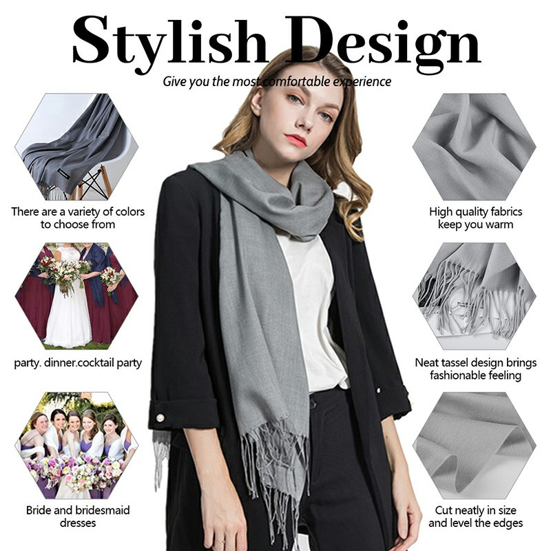 Ladies Cashmere Scarf Cashmere Wool Shawl Soft Large Thick Warm Winter Wrap - Grey