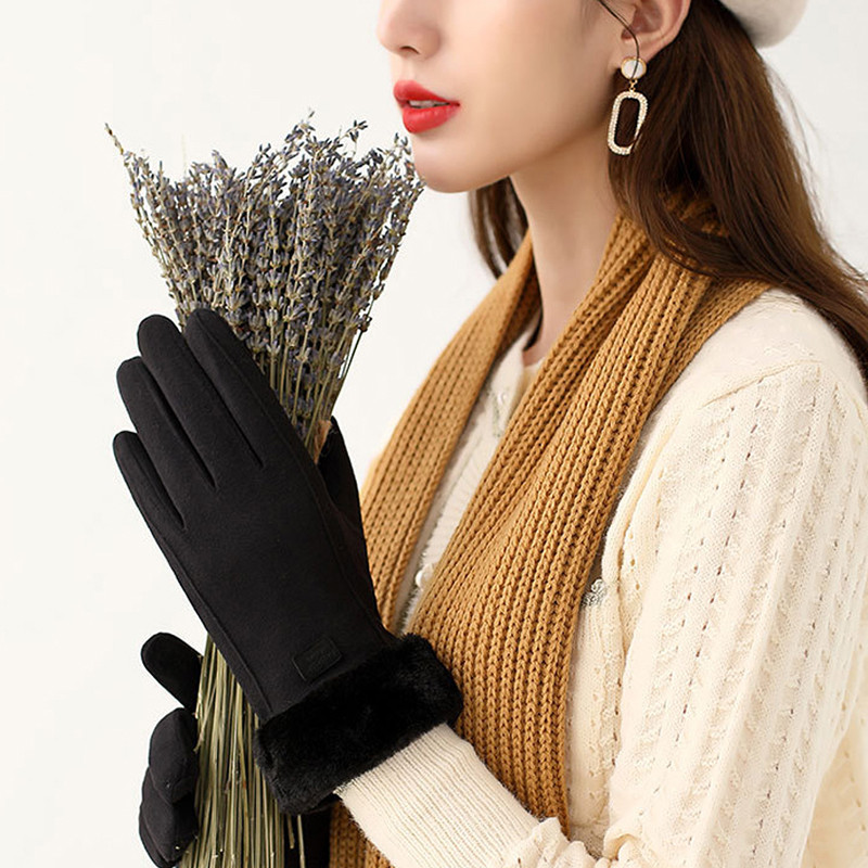 Ladies Winter Gloves Fleece Suede Warm Soft Fur Lined Thermal Gloves Touch Screen Gloves - Black