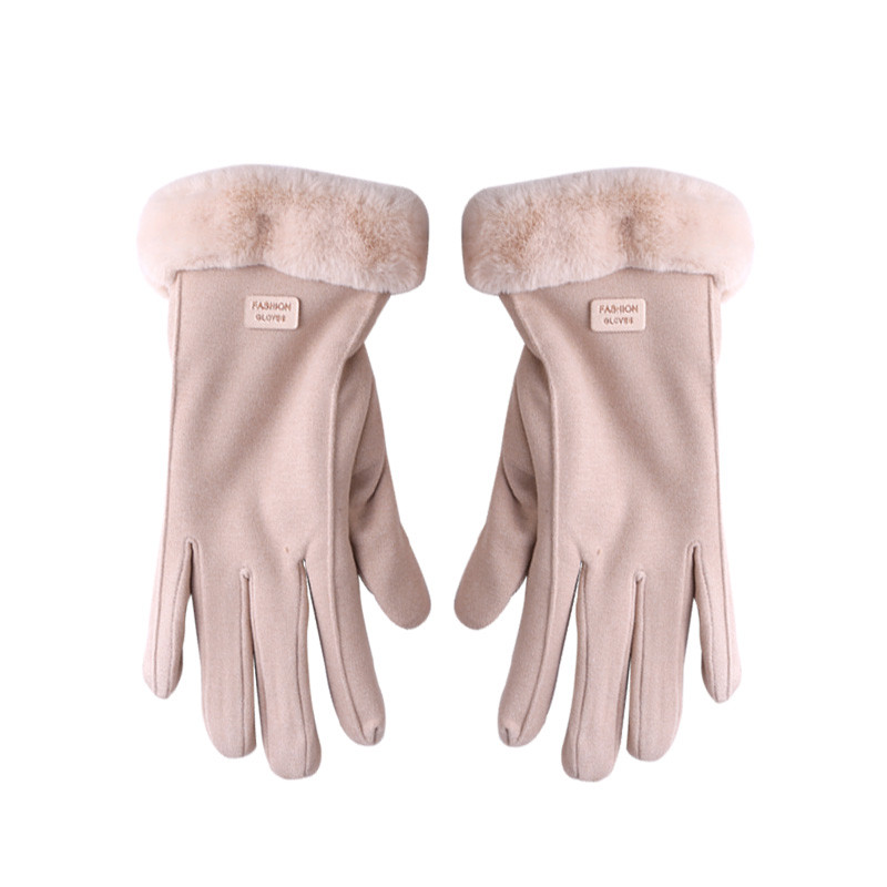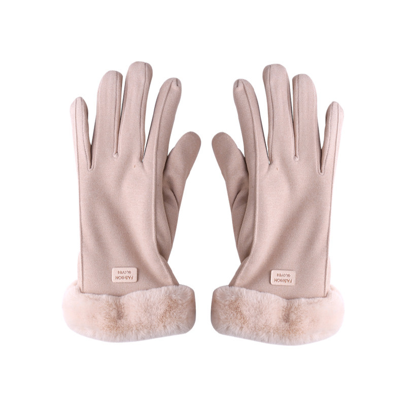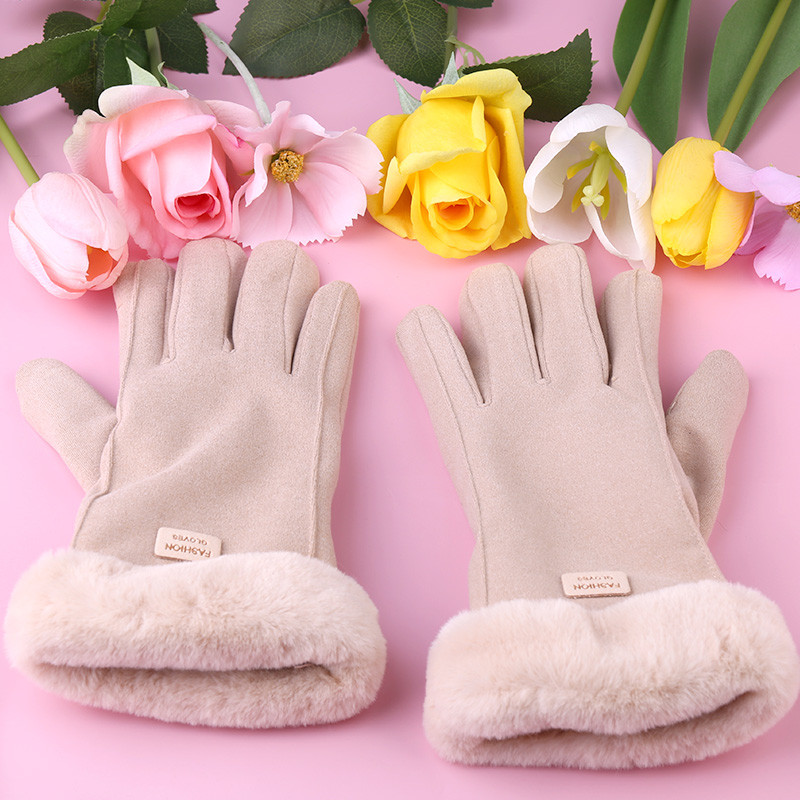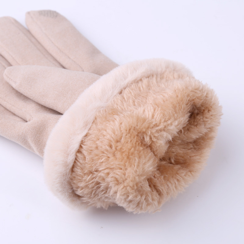 Ladies Winter Gloves Fleece Suede Warm Soft Fur Lined Thermal Gloves Touch Screen Gloves - Khaki