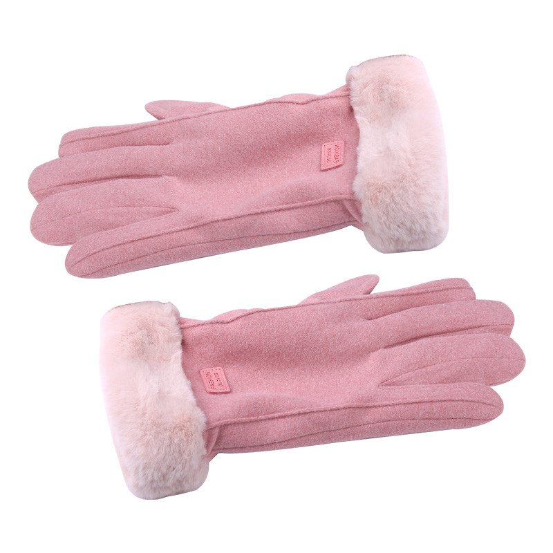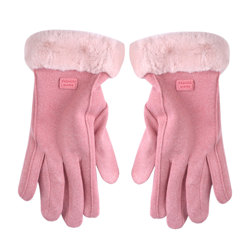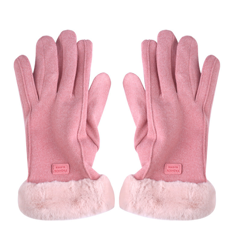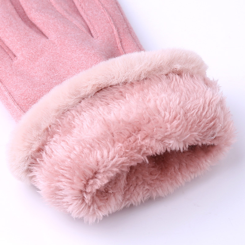 Ladies Winter Gloves Fleece Suede Warm Soft Fur Lined Thermal Gloves Touch Screen Gloves - Pink