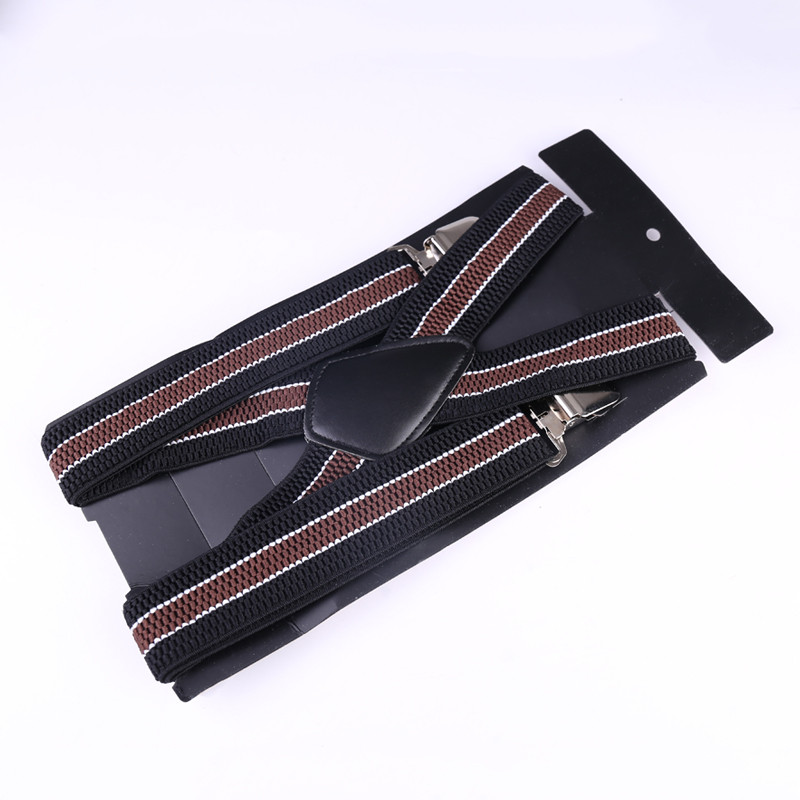 Mens 40mm High Elasticity Braces Fashion Trousers Suspenders - Brown Stripes.