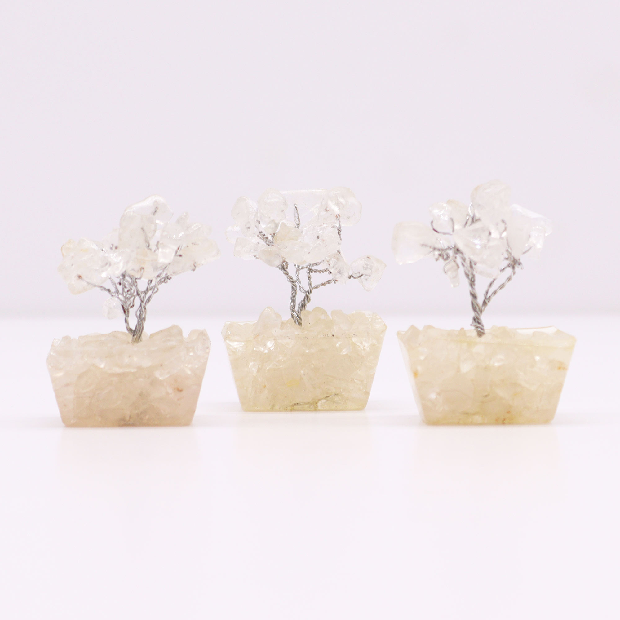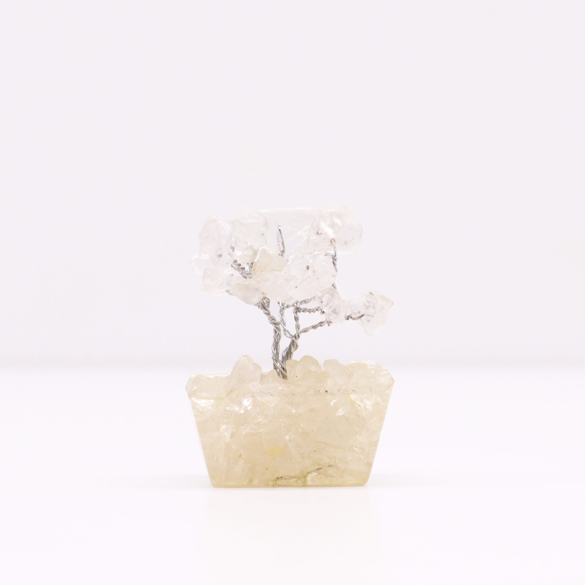 Mini Gemstone Trees on Orgonite Base - Rock Quartz - are designed to add a touch of sophistication and purity to any space, while harnessing the power of Rock Quartz to amplify energy, clarity, and spiritual connection.