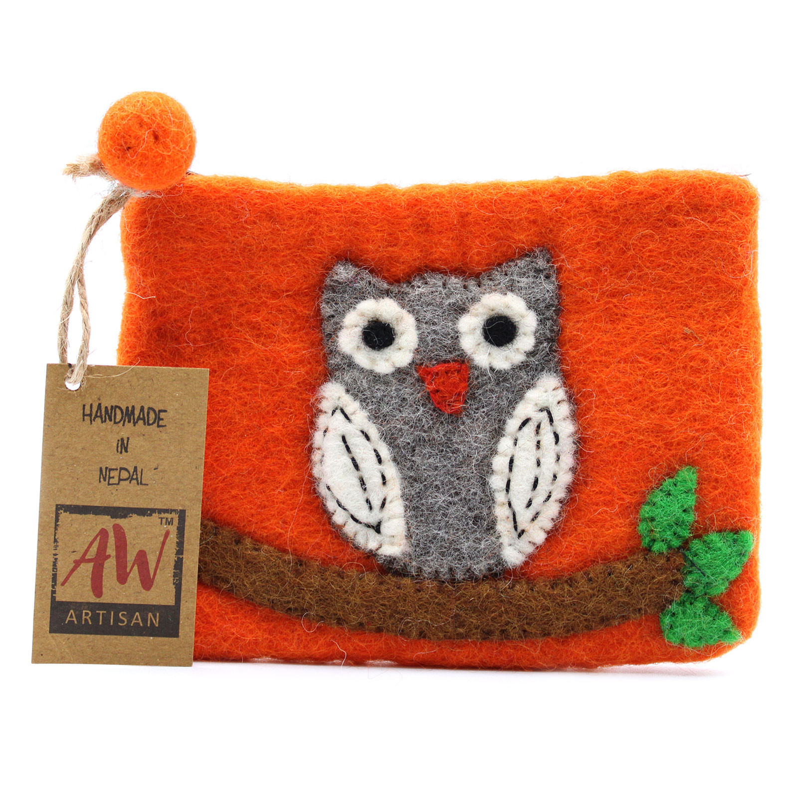 Natural Felt Zipper Pouch (asst) - Owl on Branch