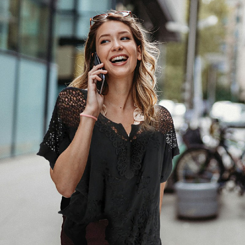Plus Size Womens V Neck Lace Tops Shirt Ladies Summer Casual Blouse Pullover Tee - Black 3XL