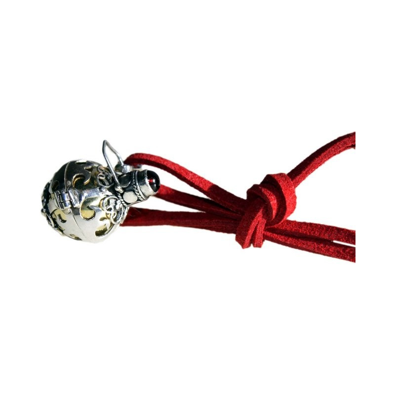 A gift of a silver angel bell, is truly a gift from the heart. Artisan made from Bali 92.5 silver. Neck cords also with silver detail and clasps. Bells are balanced brass or ceramic and resin