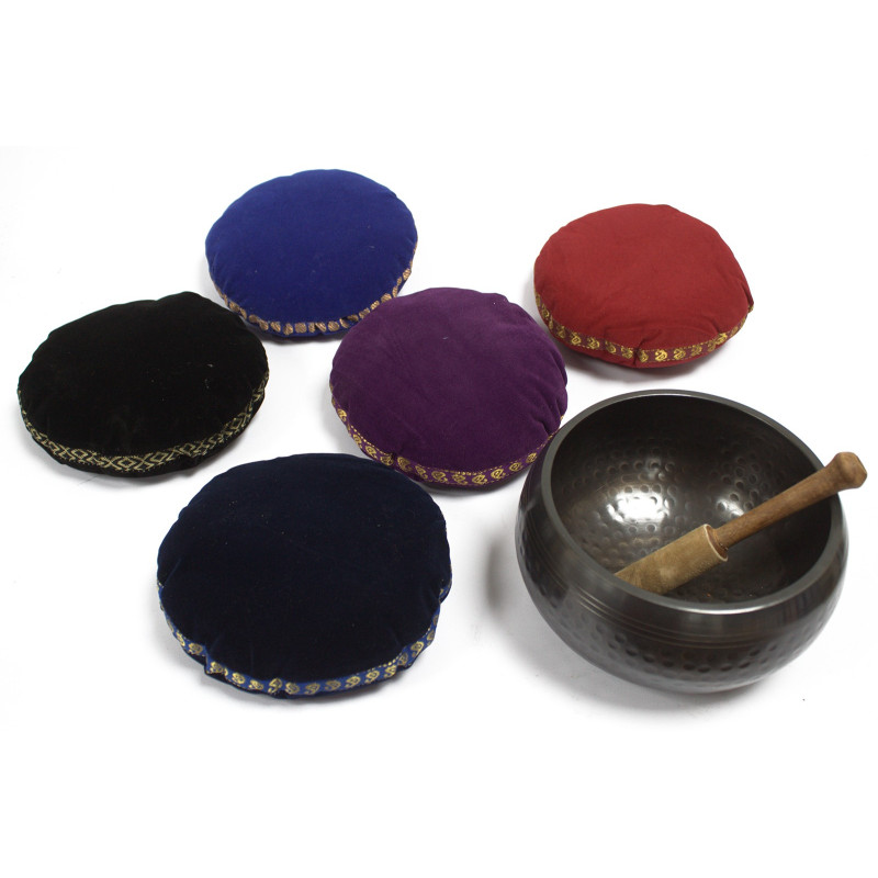 The cushion is used to place the singing bowl upon, whilst the tone is resonated throughout the bowl. This gives the bowl a supply area to settle upon to allow the tone to vibrate more.