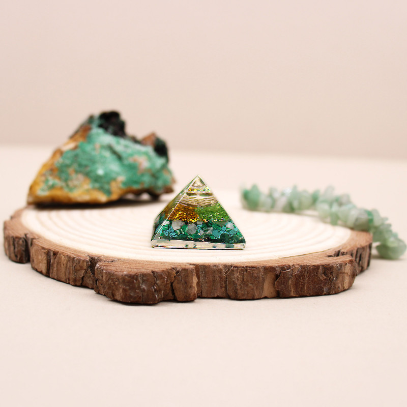 Sm Orgonite Pyramid 25mm Gemchips and Copper (assorted colours/designs)