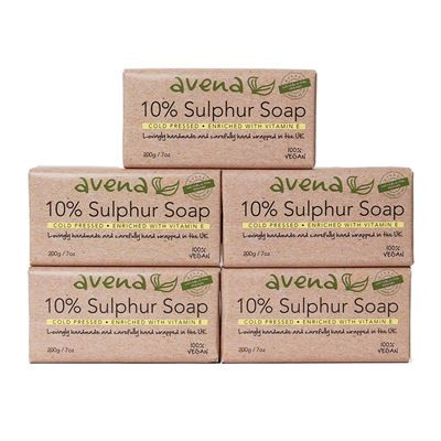 Our sulphur soap is made using only the finest ingredients and contains 10% flowers of sulphur BP blended with a pure vegetable soap base and is enriched with vitamin E.
