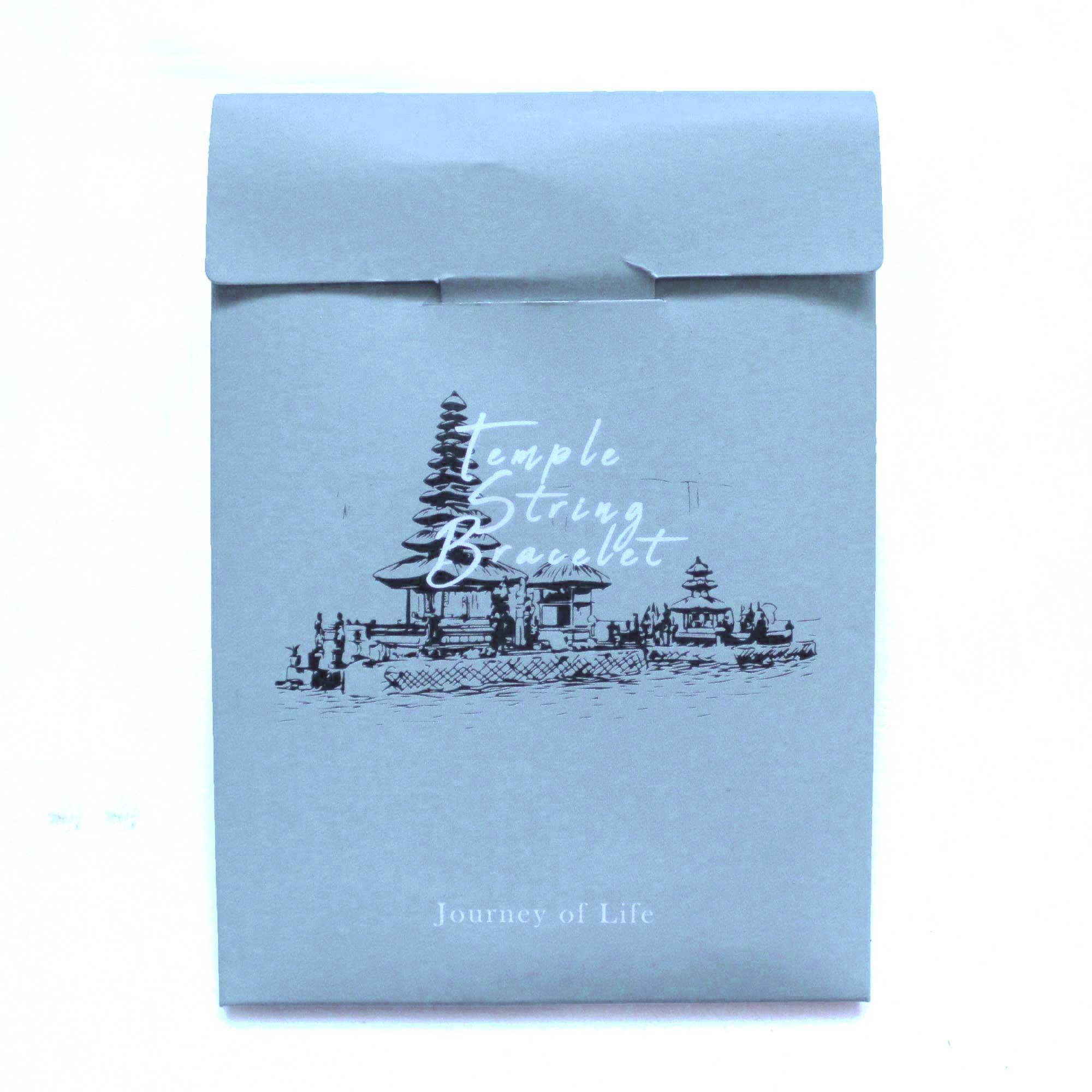 Each Temple String Bracelet - Journey of Life is packed in a blue paper bag with a short description of its intention:
