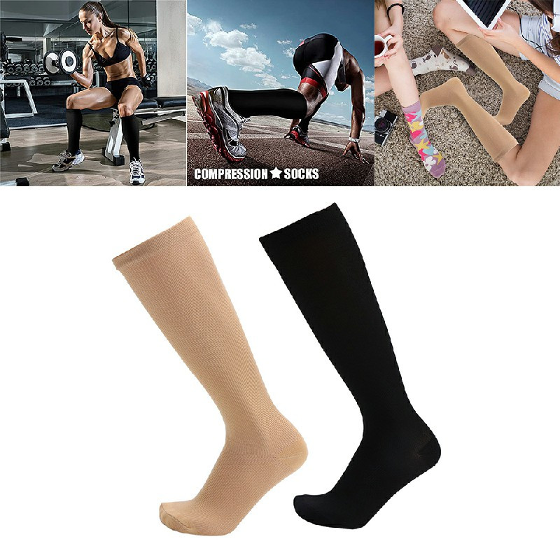 Unisex Anti-Fatigue Sport Compression Socks Varicose Vein Stocking One Pair - Black S/M