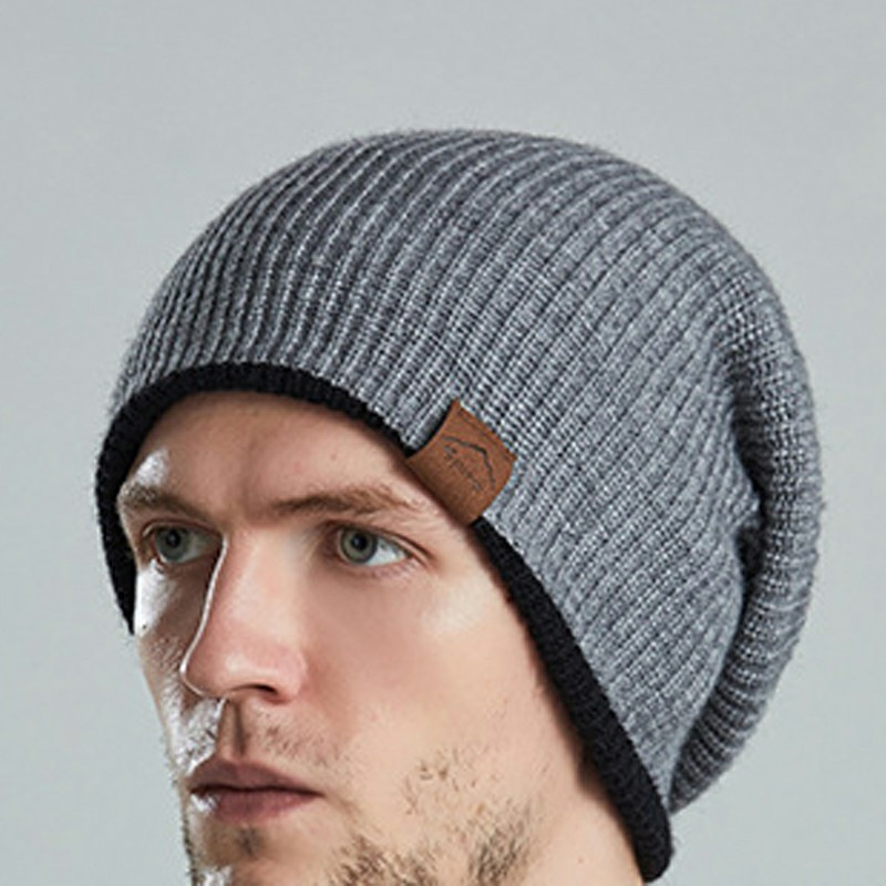 Unisex Winter Knitted Hat Crochet Thermal Beanie Cap Soft Texture Double Sided Warm Knitted Hats - Grey