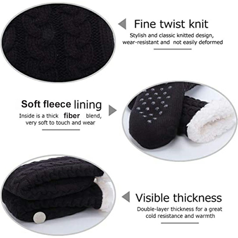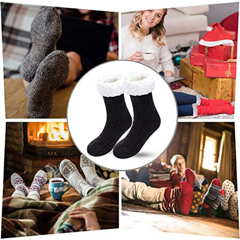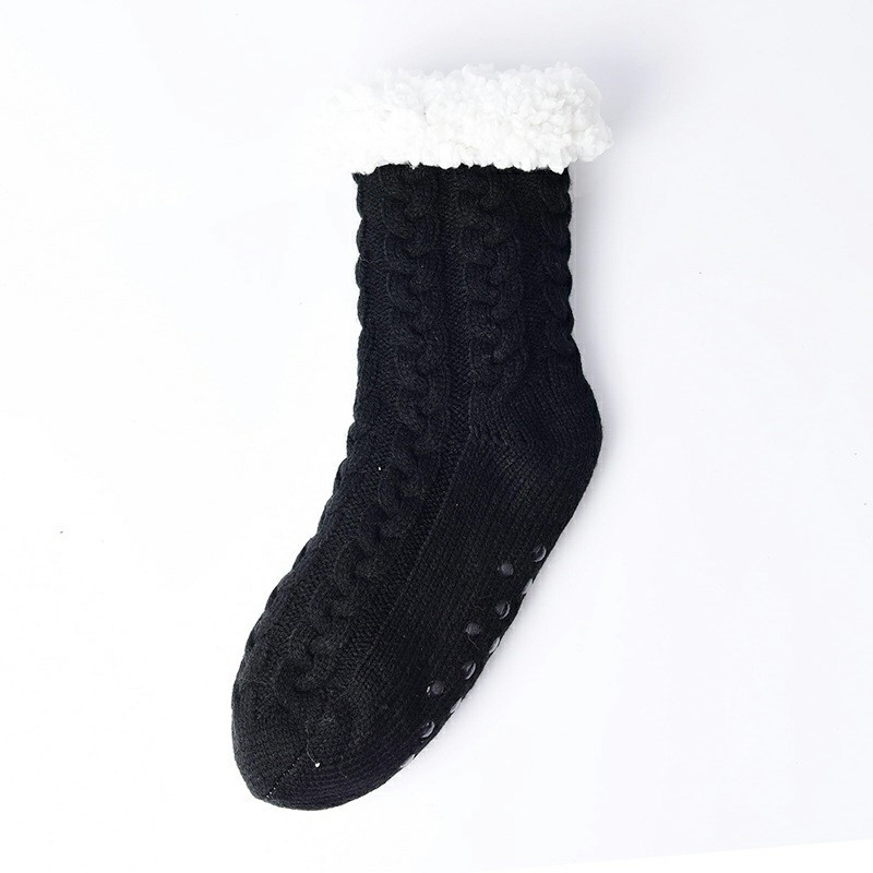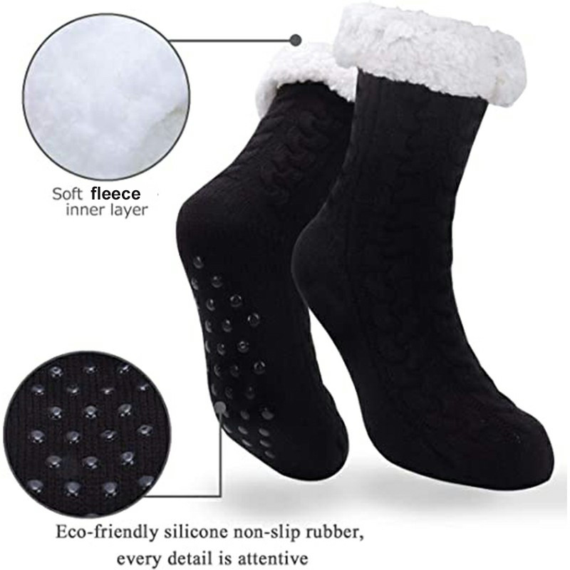 Winter Ladies Non Slip Soft Cozy Slipper Socks Fleece Lined Fluffy and Furry Knitted Warm Home Socks, Black