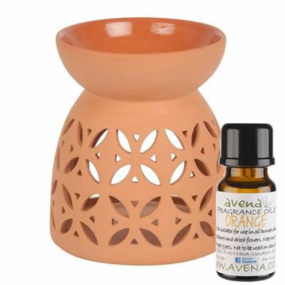 Terracotta Oil Burner Cut Out Pattern With FREE Orange 10ml Fragrance Oil