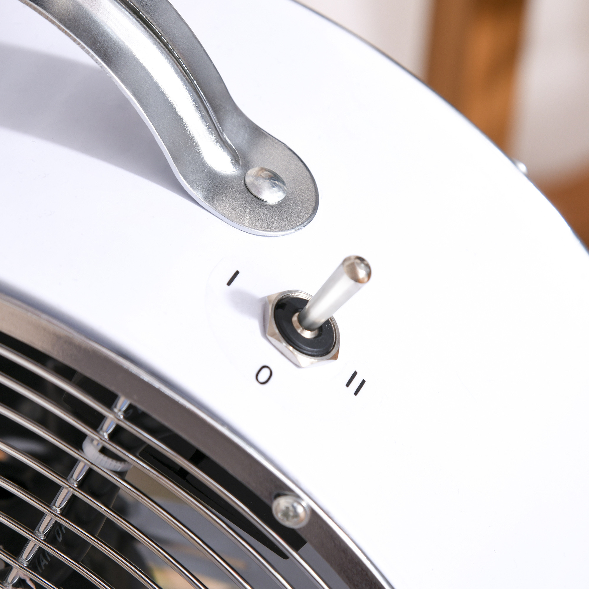 - Safe: Metal safety grill protects you from touching the blades as they move.