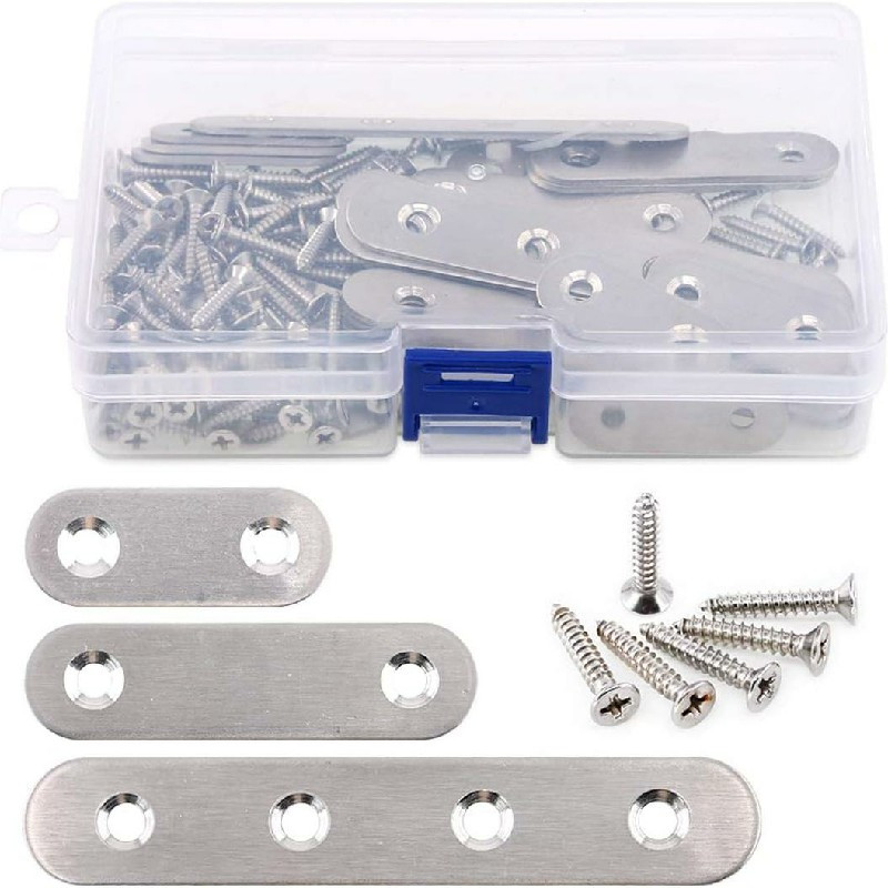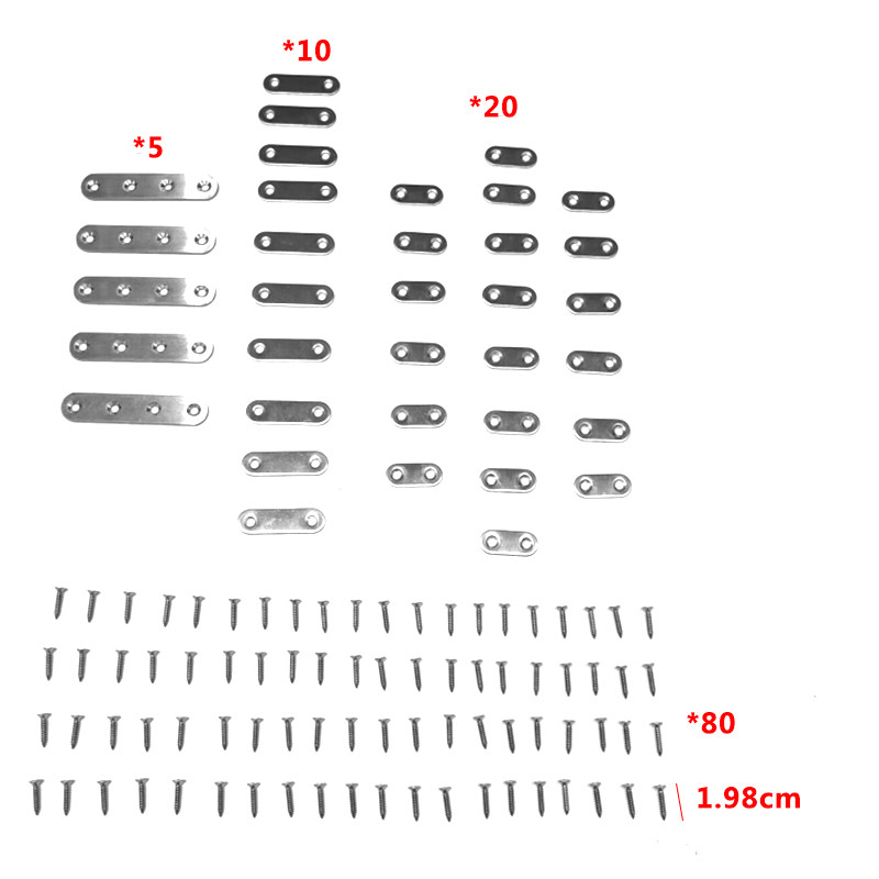 115pcs Stainless Steel Flat Straight Bracket Repair Fixing Connector and Screws Set.