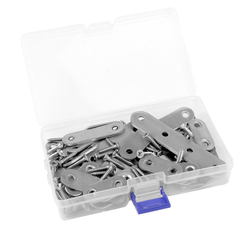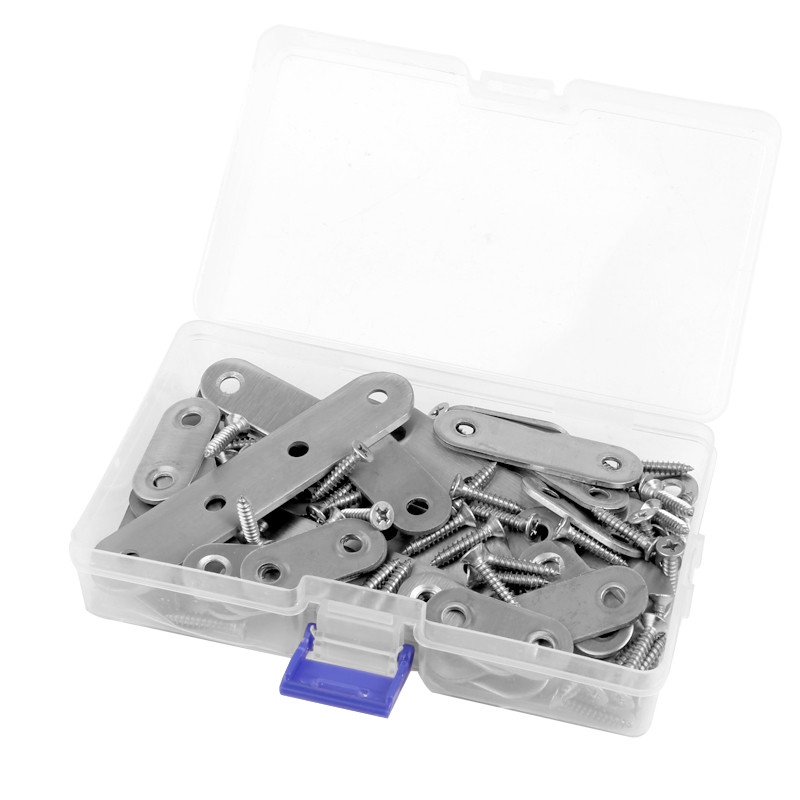 - Matching Screws: The 35pcs flat plate brackets which have 2 holes and 4 holes were matched with 80pcs stainless steel screws, which will save your time for purchase; Screw hole with sinking design, screws will not protrude after installation, makes it more beautiful.