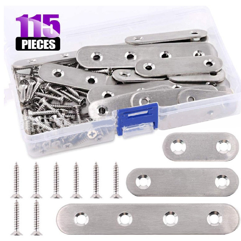 115pcs Stainless Steel Flat Straight Bracket Repair Fixing Connector and Screws Set