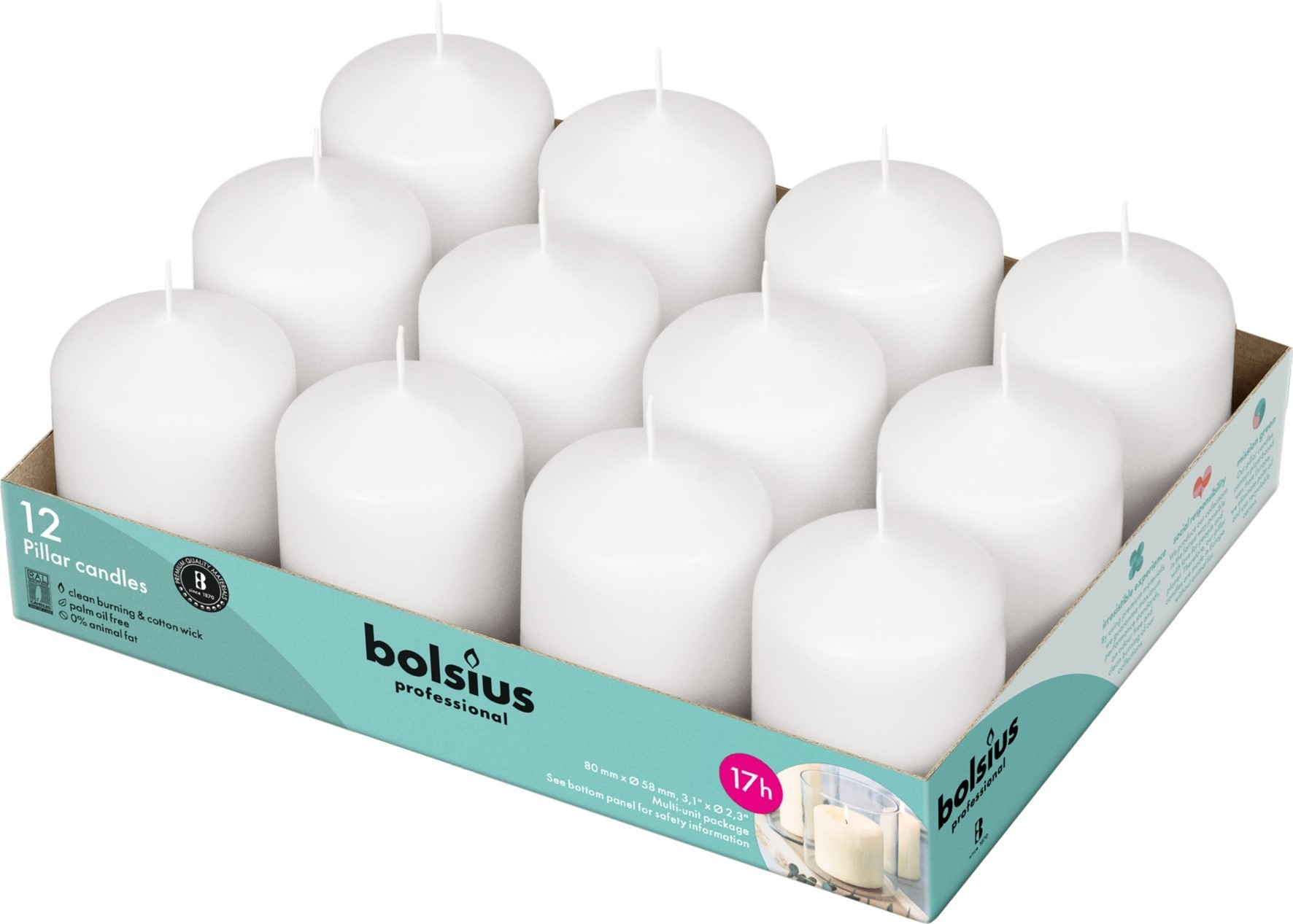 12 Bolsius Professional Pillar Candle- White (78mm/58mm)