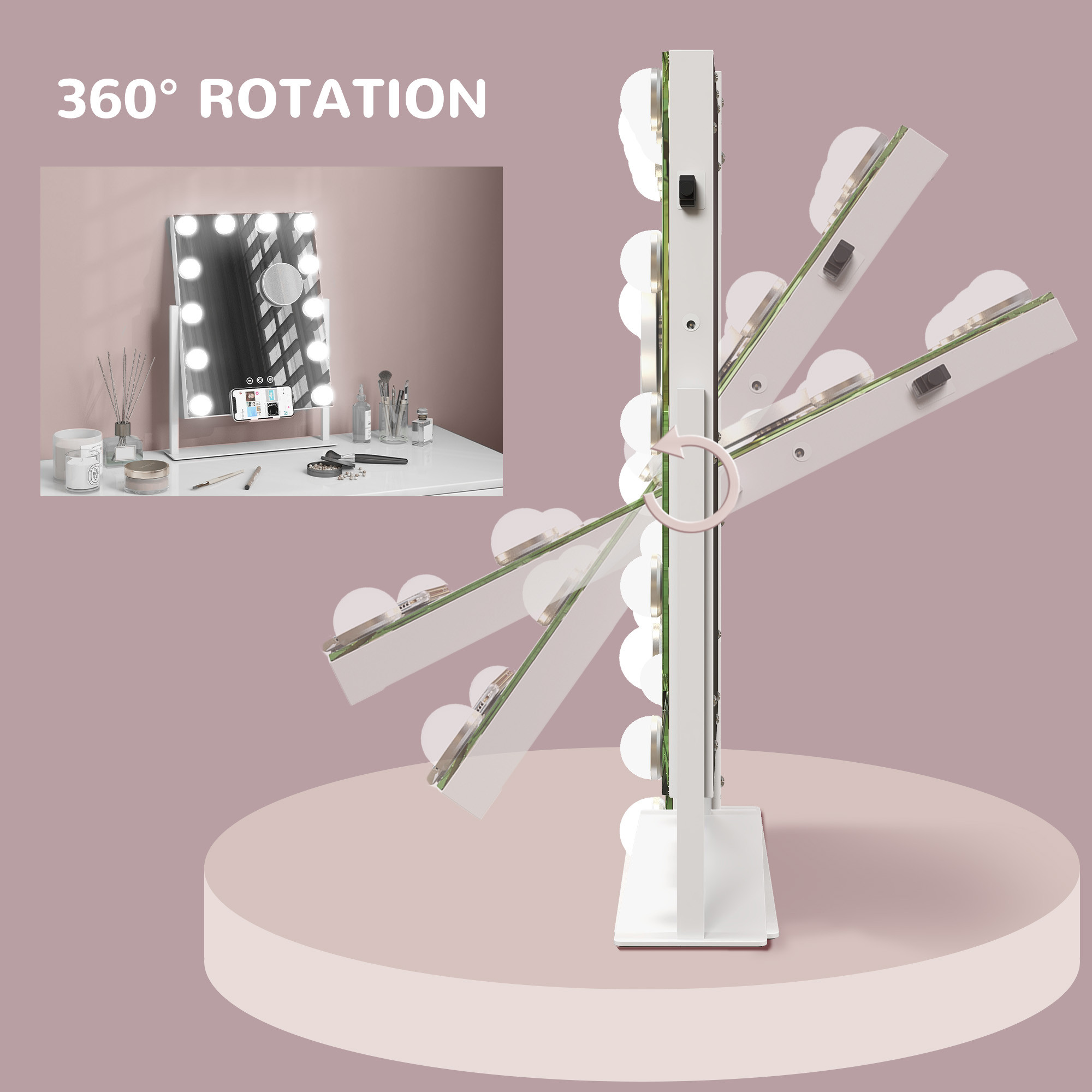 - 360° rotation: Large vanity mirror effortlessly moves to any desired angle you prefer. Metal frame allows for stable placement on any tabletop.