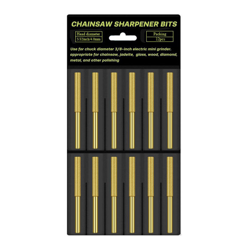 12 Pcs Diamond Chainsaw Sharpener Burr Grinder Chain Saw Drill Bits Chainsaw Sharpening Stones File - 4mm