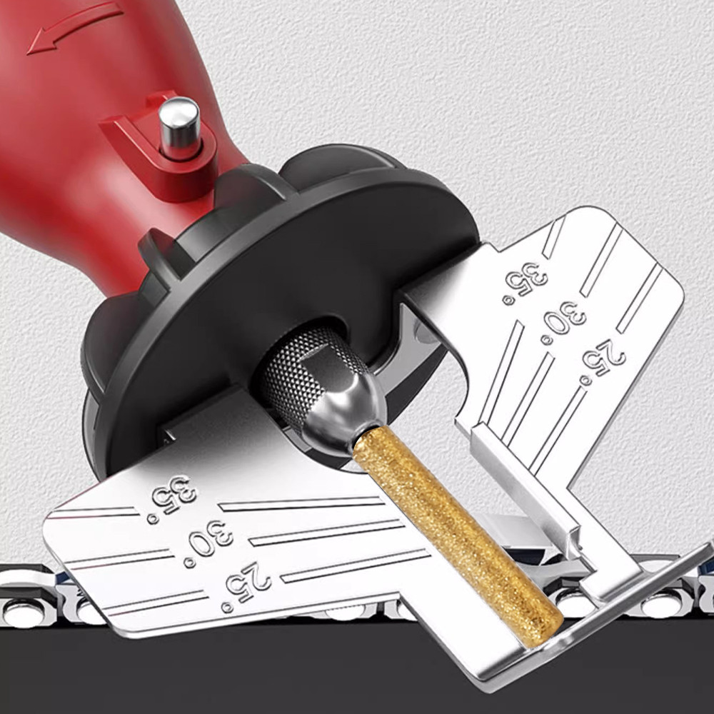 - Use with electric handheld grinder to easily sharpen your saw chain.