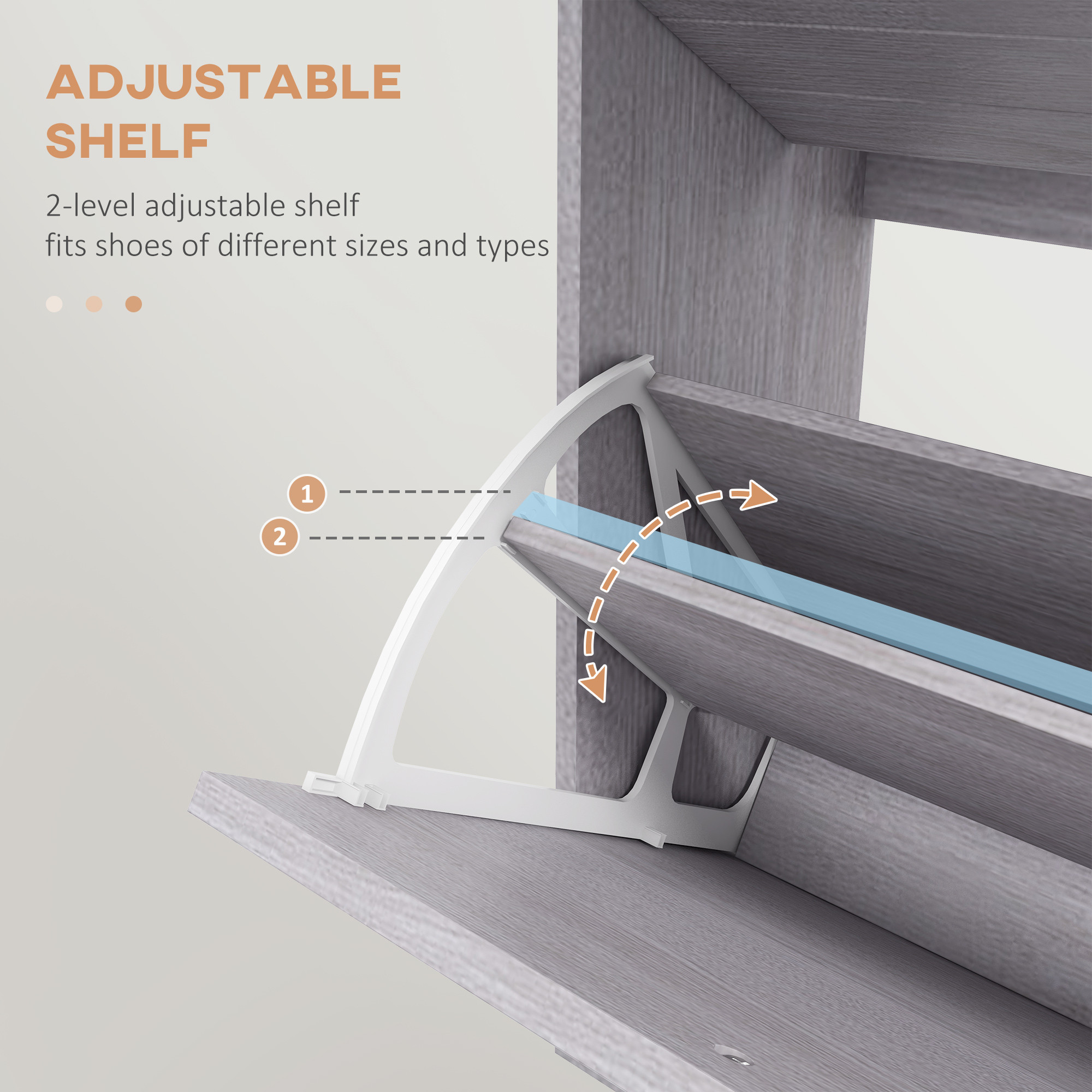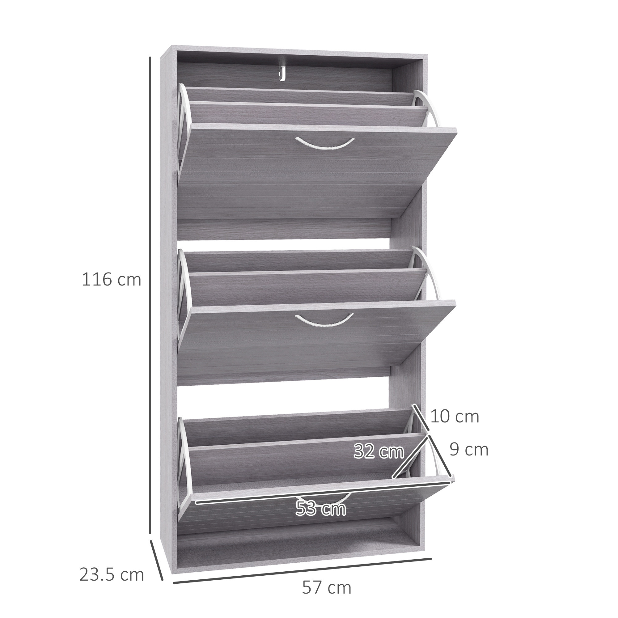 12-Shoe Flip Drawer Storage Cabinet - Grey Wood-Effect