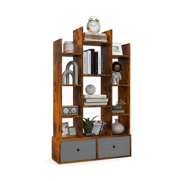 Compact Shelf and Space Saving: Our shelf can hold more books than other types while occupying less space! This functional storage shelf has 12 tiers shelves and 2 storage drawers. It can help you store books, magazines, photo albums, files or records and keep your room tidy. Thanks to its non-woven fabric drawers, they can be folded when you no need to use it!