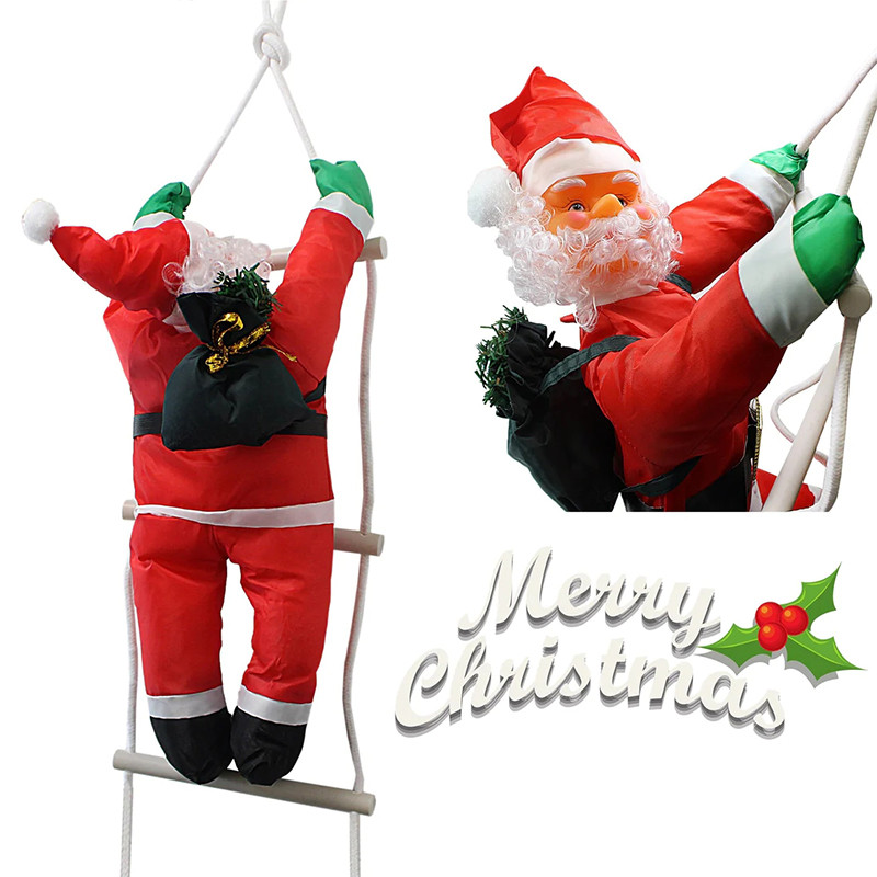 120 cm Christmas Santa Claus Climbing On Rope Ladder Figure Home Ornament for Xmas Holiday Decor.