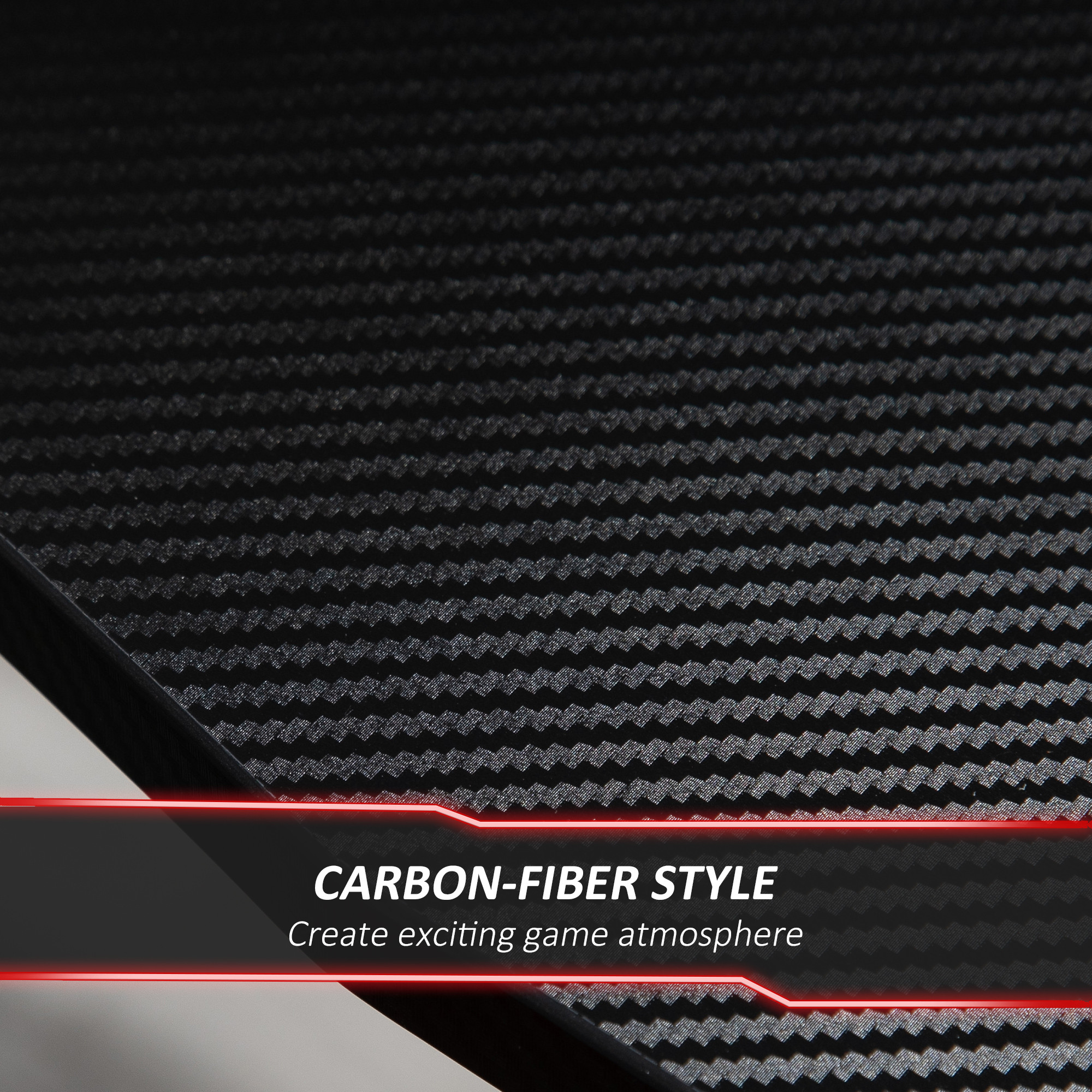 - Carbon fibre surface: The computer table is coated with carbon fibre material on desktop for high hardness and strength. Its smooth and wear-resistant feature offers a superior gaming experience.