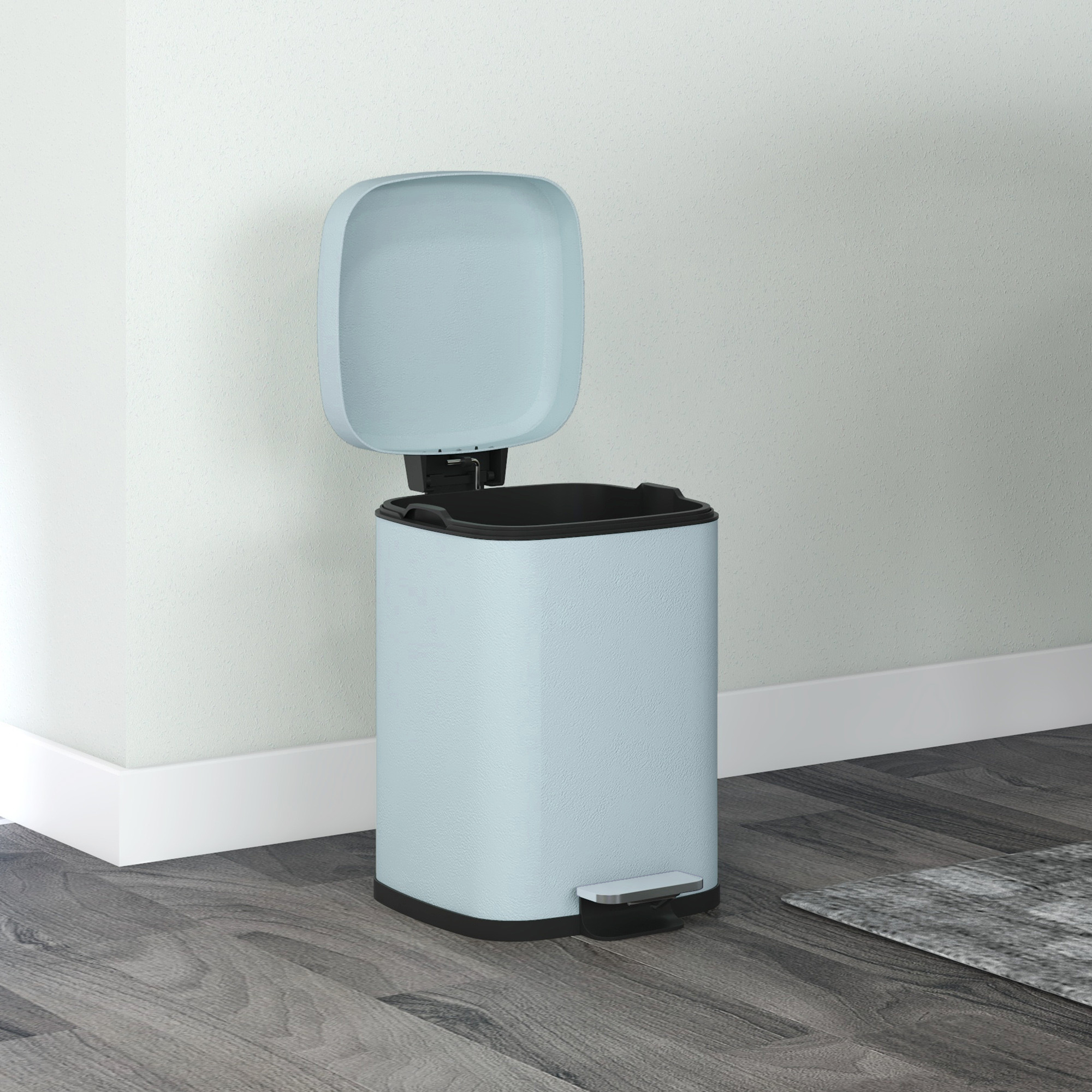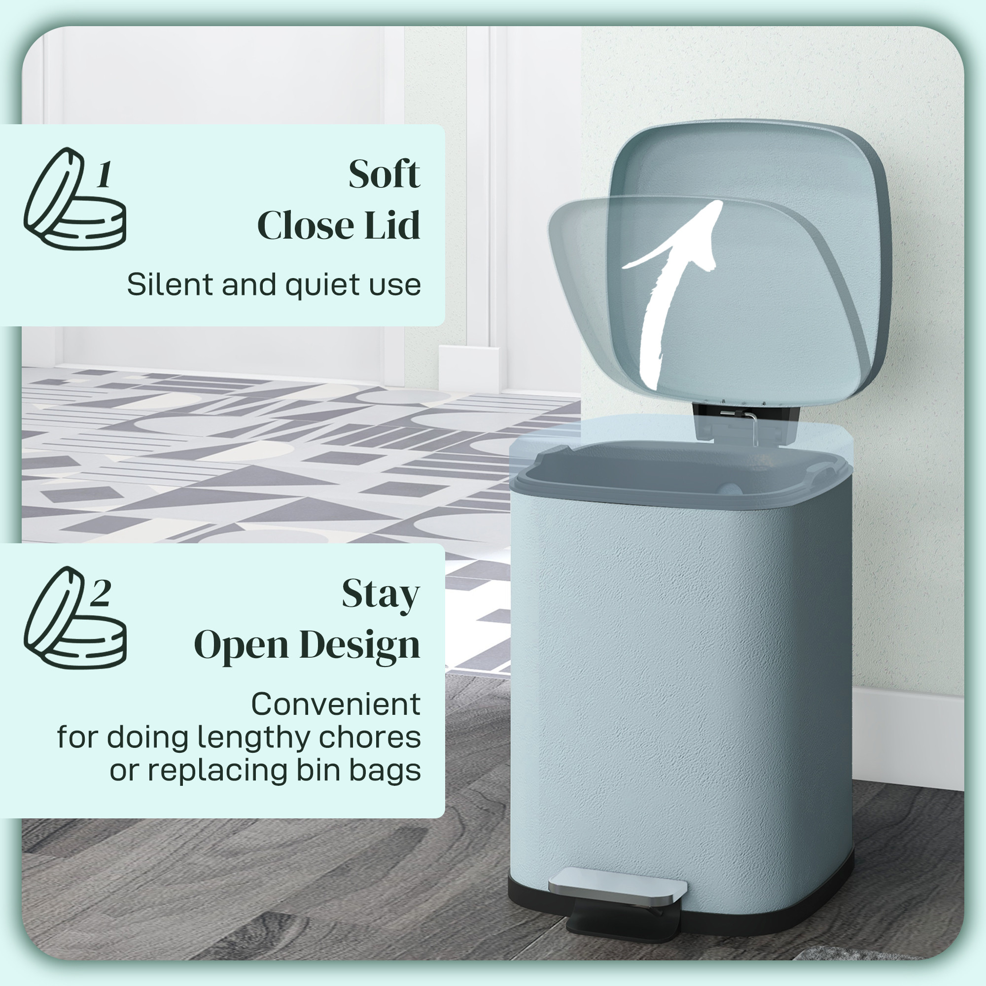 - Pedal opening, with soft-close lid: Simply press to open the lid of this rubbish bin. Gently closes so it doesn't disturb your family.