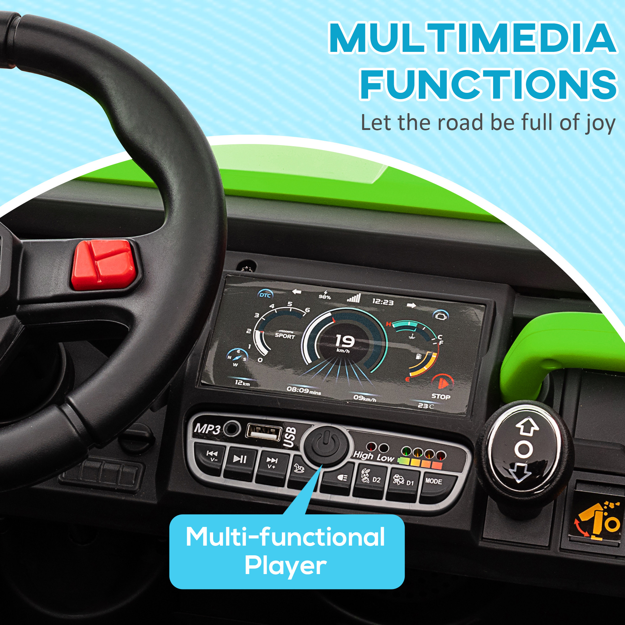 12V 2 Seater Kids Electric Ride-On Car with Electric Bucket, Remote Control - Green