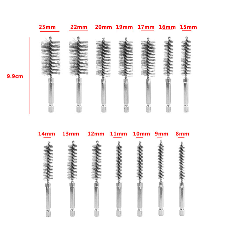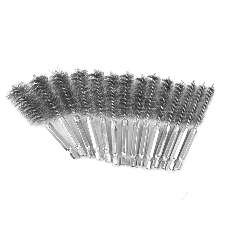 14 Pcs Stainless Steel Electric Drilling Brushes Bore Brush Wire Pipe Cleaning Brush for Electric Drill