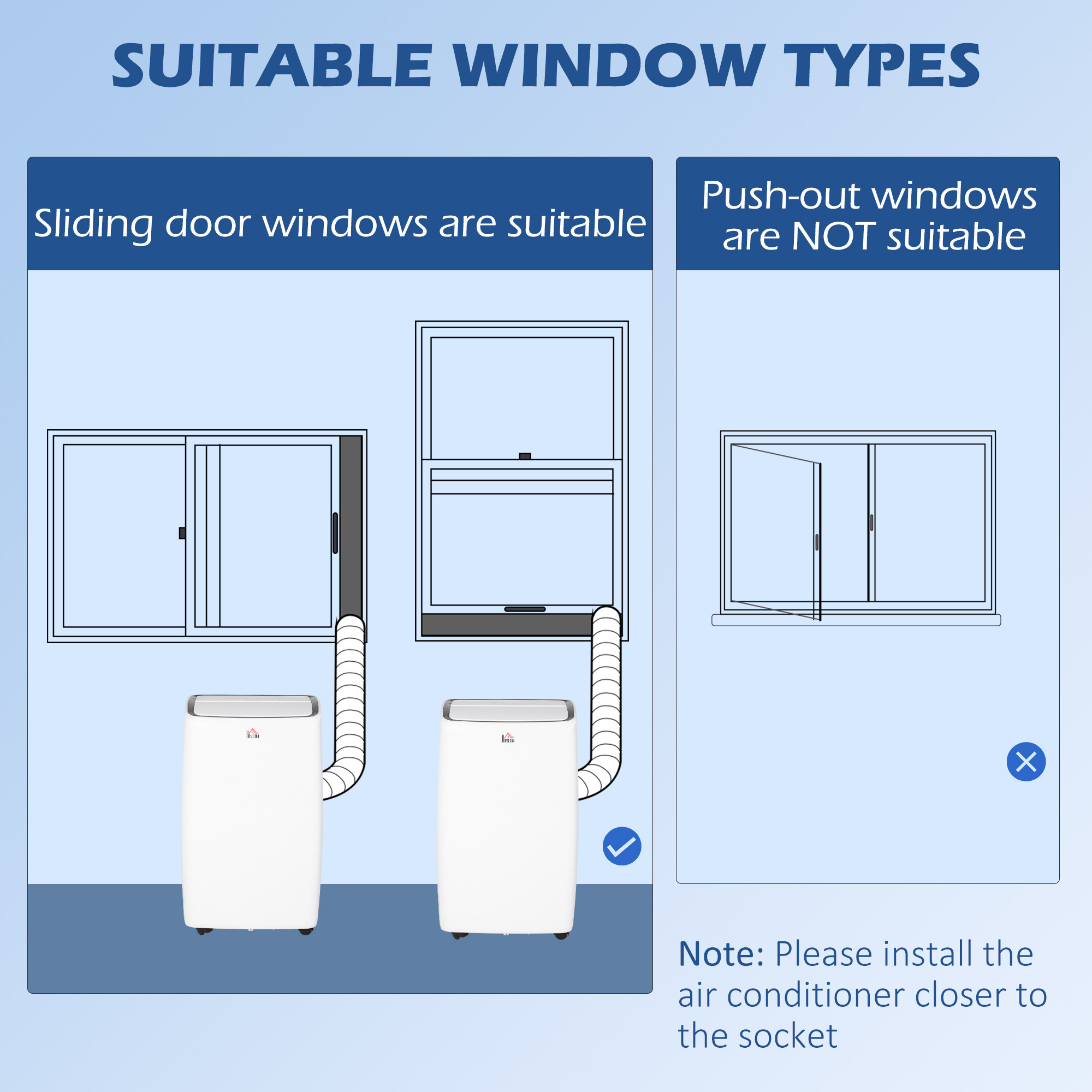 - Four wheels: Easy to roll around from room to room. Compact design makes the portable air conditioning suitable for small rooms. Removable and washable filter. Sliding window kit included.