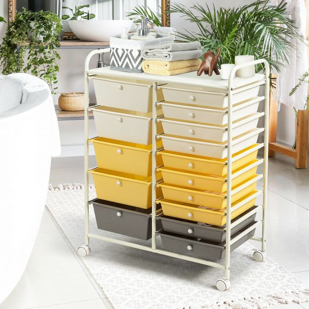 Solid and Durable Construction: The main frame of this drawer storage cart is constructed of premium iron material coated with chrome, which brings a firm frame and gives you a long time of service. This 15-drawer rolling cart is designed to be service durable and is resilient to deformation.