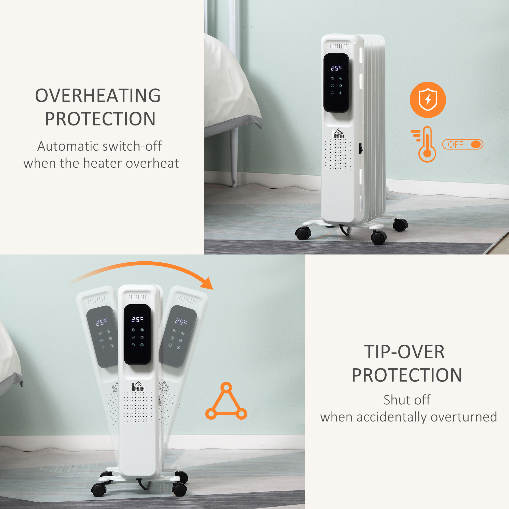 1500W Oil Filled Radiator, 7 Fin Portable Electric Heater with LED Display, 24H Timer, 3 Heat Settings, Adjustable Thermostat, S