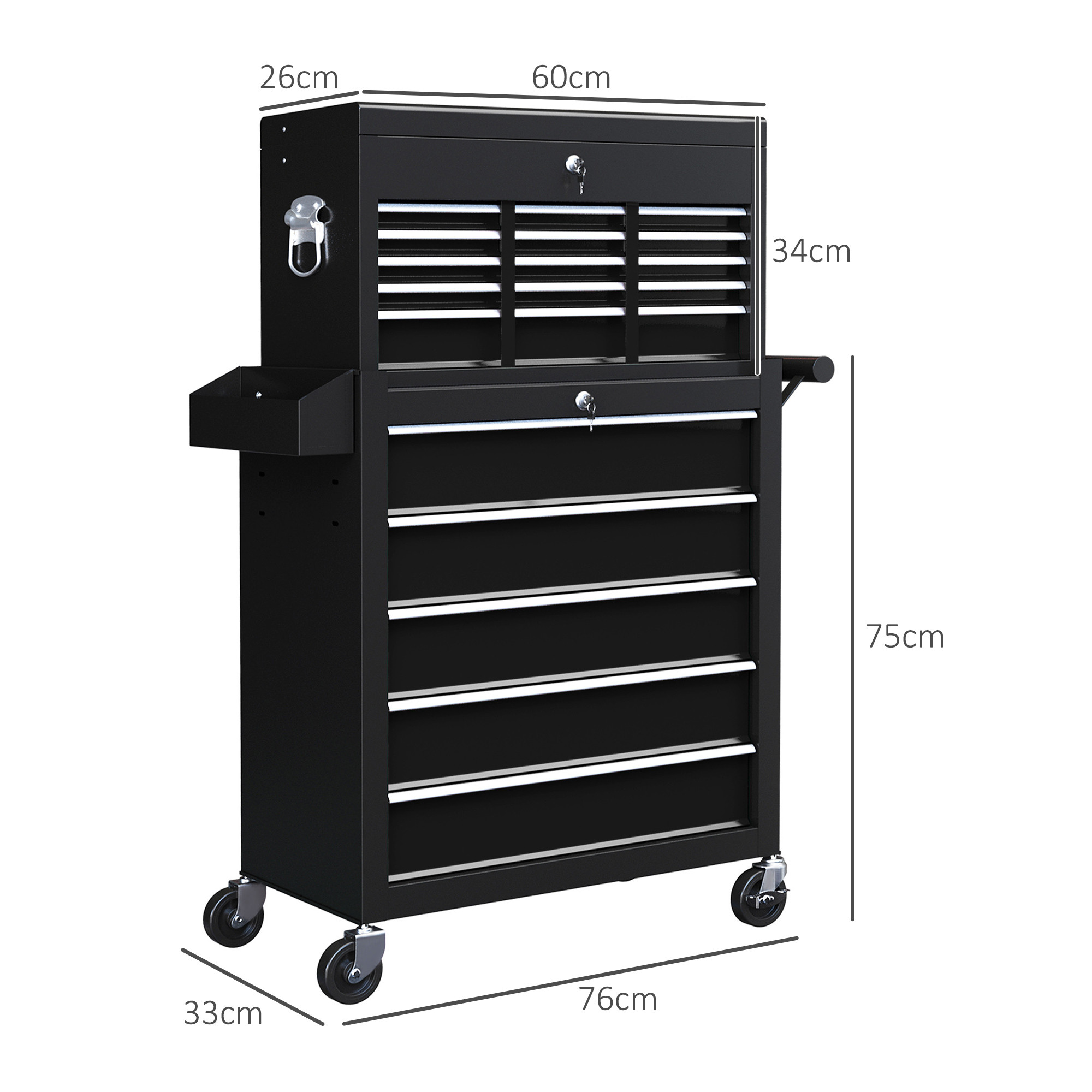 19 Drawer, Two-Part Tool Storage Chest on Wheels - Black