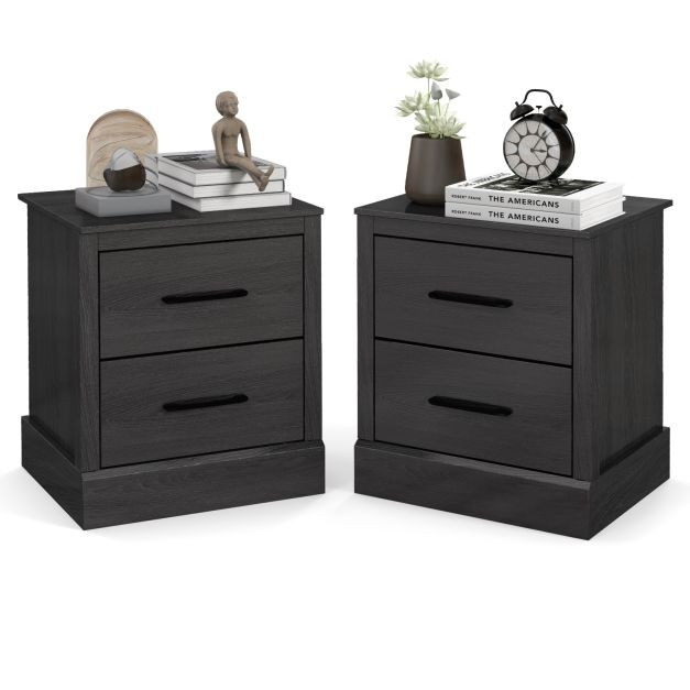 2 Drawers to Enlarge Storage: The nightstand comes with 2 drawers that enlarge storage and classified space for daily essentials. Besides, the square tabletop is spacious enough for lamp, books or cups. The practical bedside table can release you from trouble of messy small stuffs.