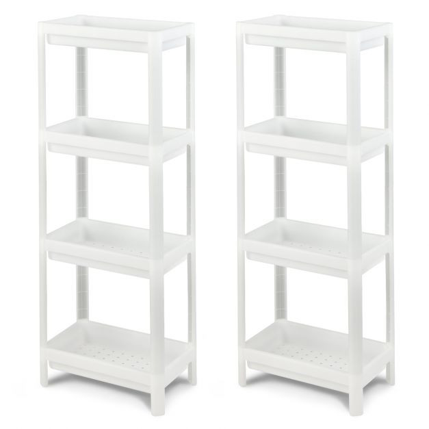 The 2-pack 4-tier storage racks can hold multiple items and also improve the utilization of limited space. Additionally, the utility rack set of 2 can be adjusted to different layers based on your needs. 4-tier shelves with appropriate height are easy to classify and store kitchen supplies, bathroom essentials, or any other daily items. The closely spaced drainage holes on each shelf are effective to avoid water accumulation. More, the hollow-carved design makes it easy to adapt to a humid environment. Such functional storage racks will be a fabulous addition to your kitchen, living room, bathroom and so on. If you are looking for such a product, do not hesitate to buy it!