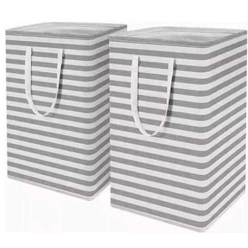 2 Pack Laundry Basket Folding Hamper Bag Storage Bin with Handle - Grey+White.