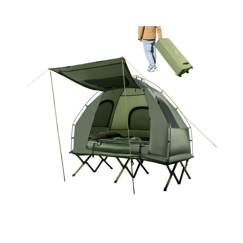 2-Person Camping Tent Cot Folding Camping Bed with Sleeping Bag