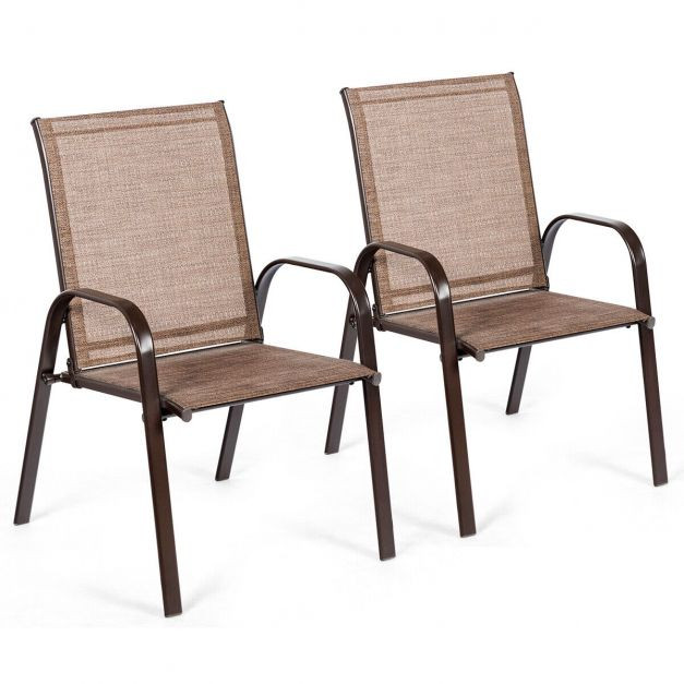 This set of 2 patio chairs combining with practical and modern design is perfect for your outdoor environment. Featuring with solid steel frame with powder-coated finish, this chair has high stability and strong durability. The breathable fabric is durable enough to support large weight capacity and it provides a concise look in any setting. In hot summer days, this chair will provide you with cooler sitting experience with the mesh fabric. Smart space-saving design is convenient for storage when not in use, which won’t take much space. It is perfect for backyard parties, picnics, outings, or relaxing on a porch.