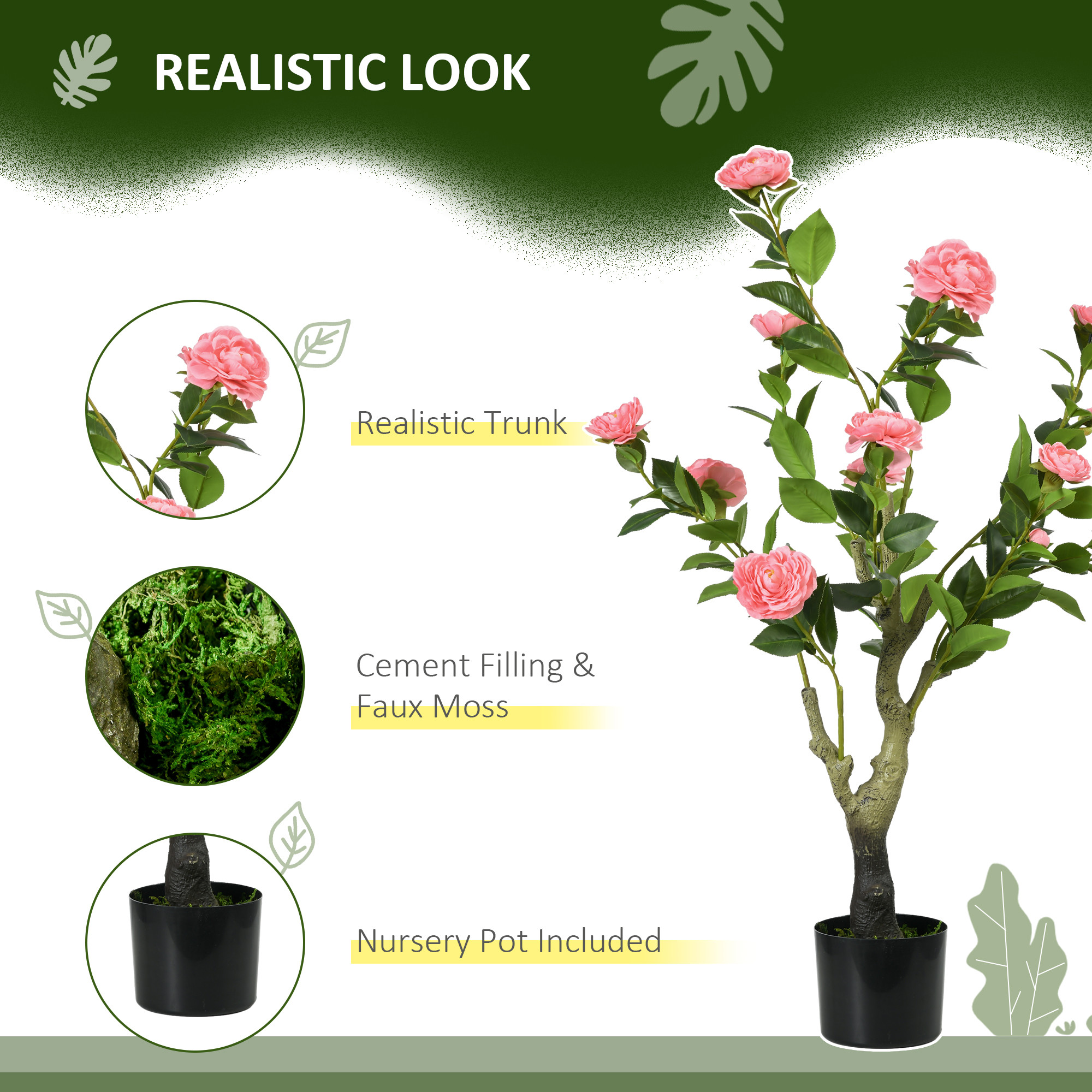 2 Pieces Decorative Artificial Plants Camellia Flower with Pot, Fake Plant for Home Indoor Outdoor Decor, 95cm, Pink