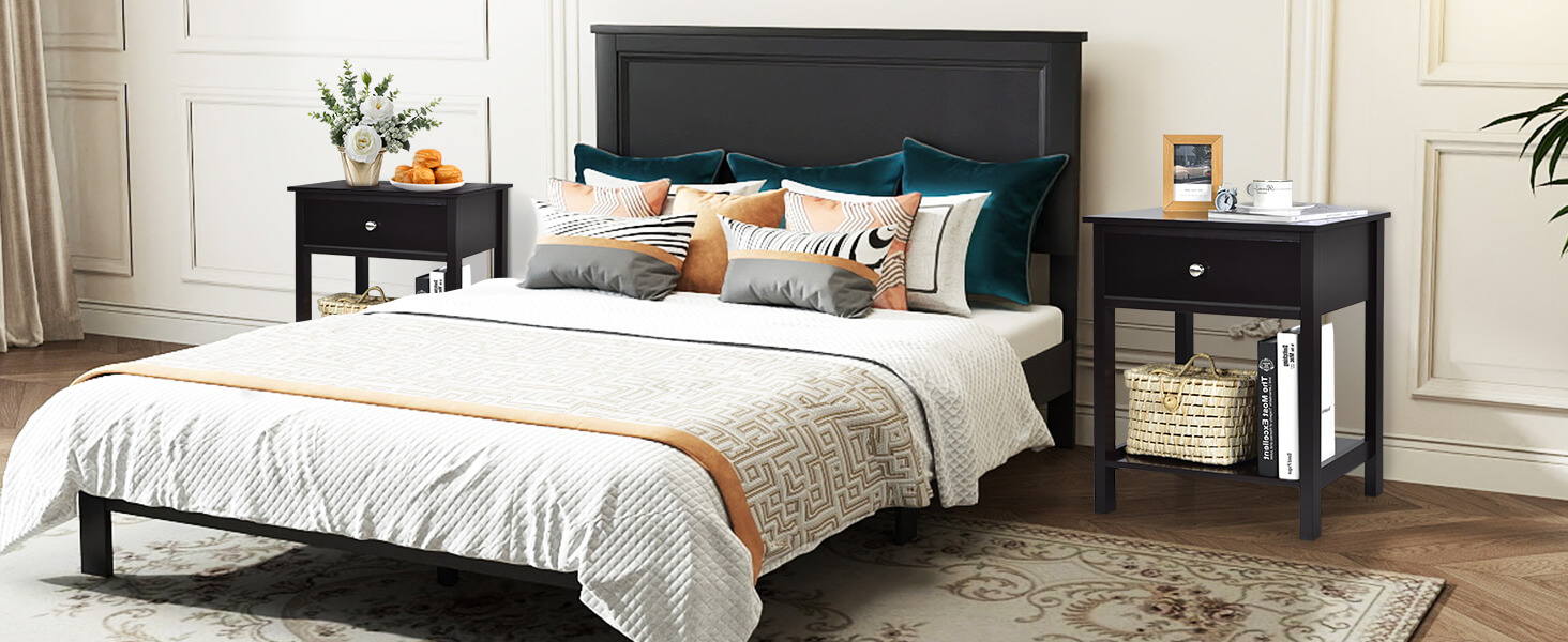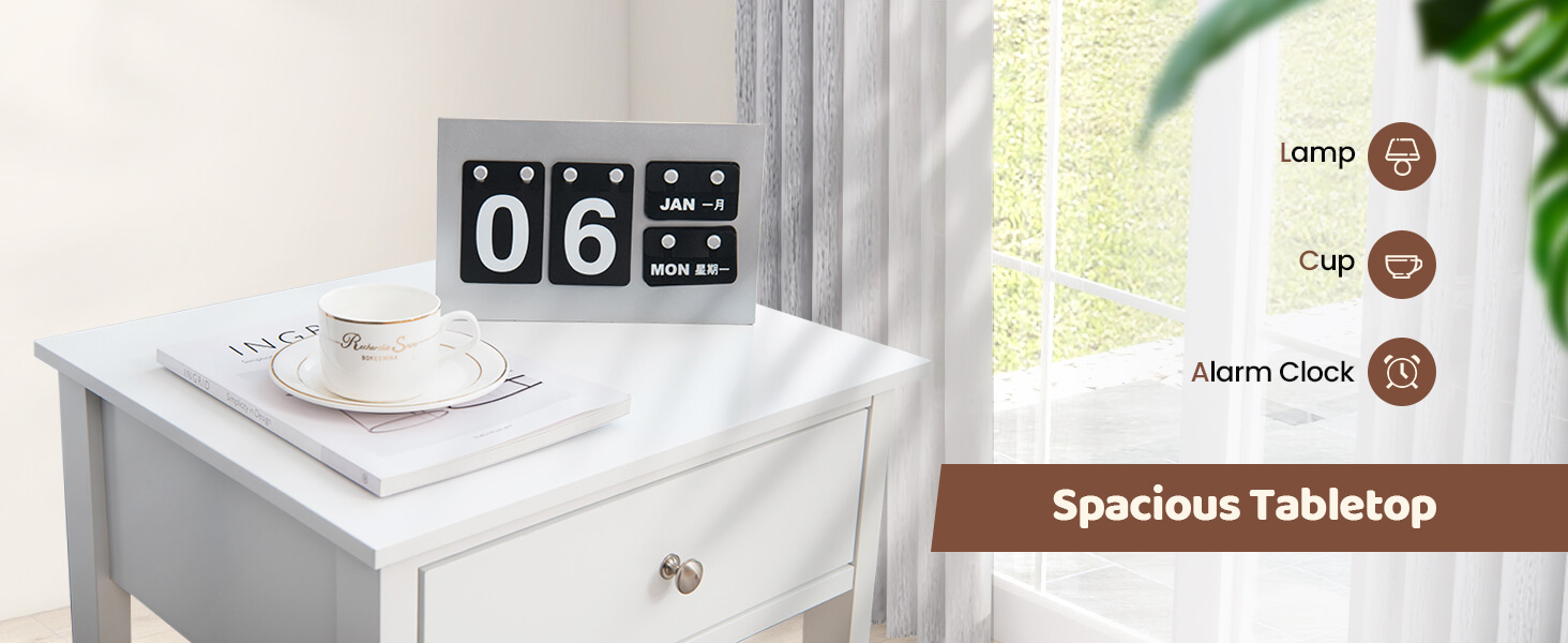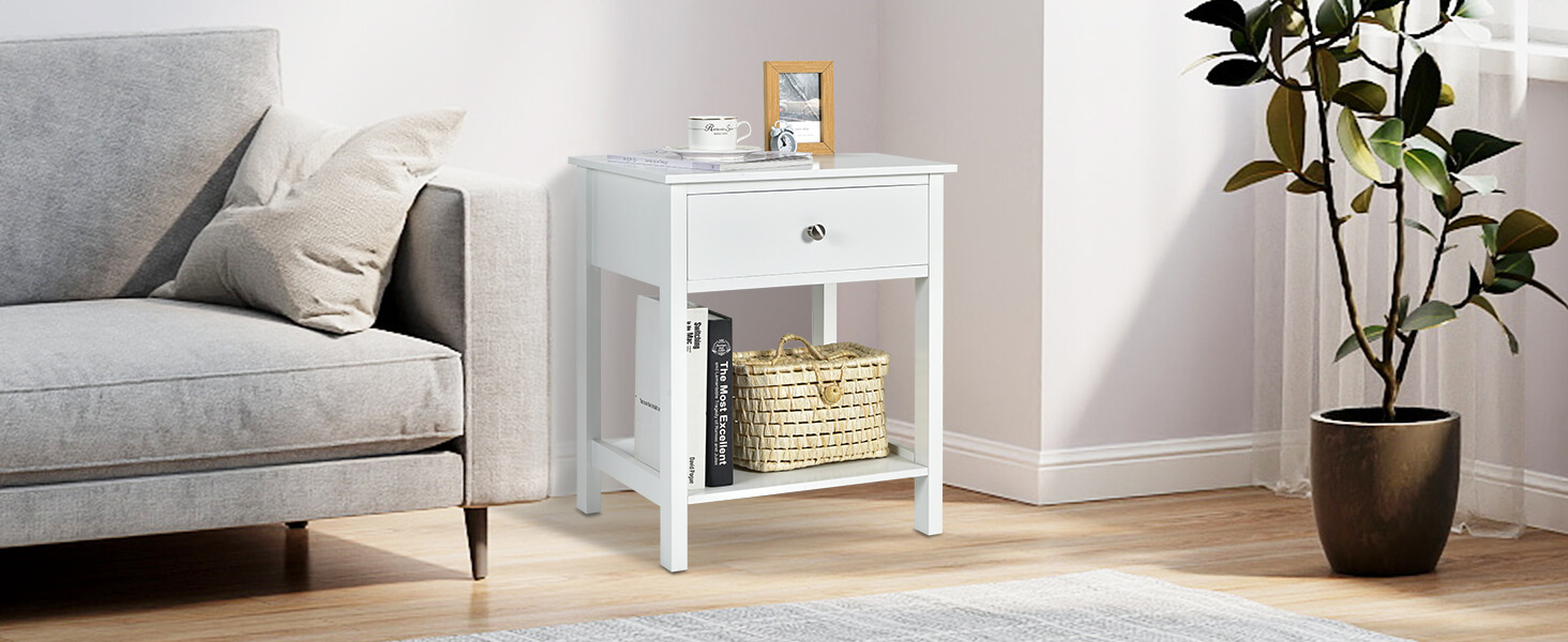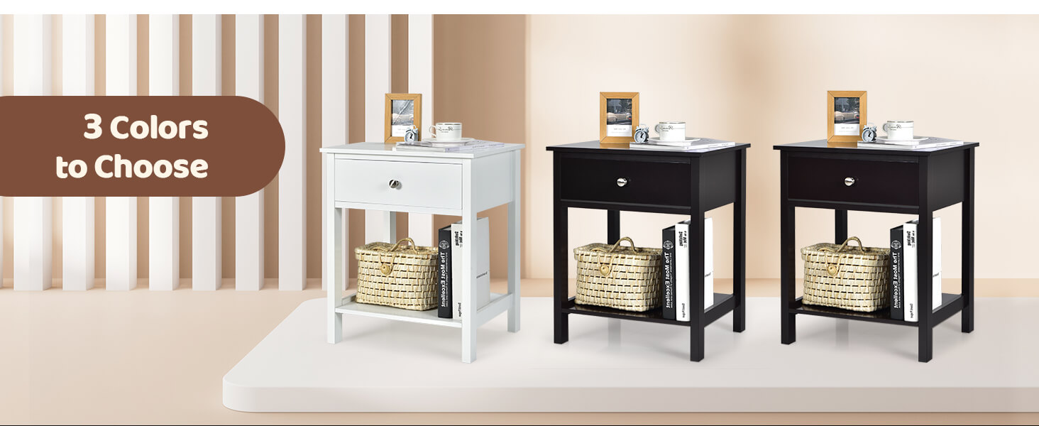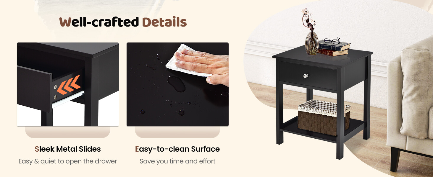Sufficient Storage Space: Equipped with 1 sliding drawer and 1 bottom open storage shelf, this 2-tier nightstand provides ample space for storing your bedside essentials or other sundries. Besides, the spacious tabletop allows you to place cups, glasses, family photos, lamps, alarm clocks, and more.
