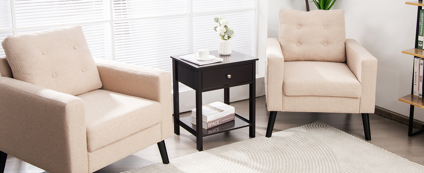 Easy to Assemble and Clean: Coming with detailed instructions and necessary hardware, it is easy to assemble this snack tea table. Simply tighten the screws and push the drawer in, then a set of 2 bedside tables are by your side. Besides, the surface of this sofa side table is sprayed with waterproof paint for easy wipe cleaning.