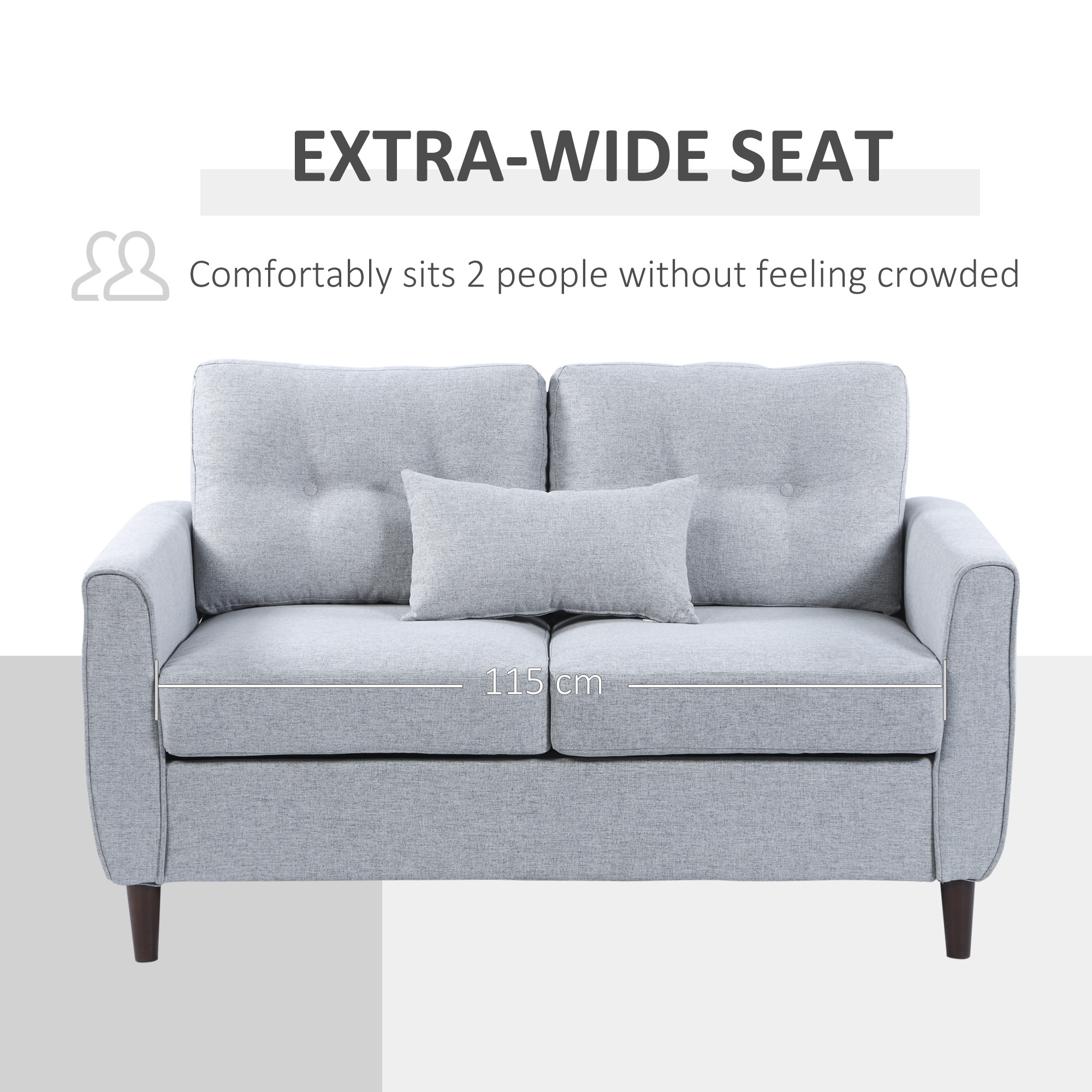 - Comfortable: Thick sponge-filled seat and back cushions, simply sit down and sink in. Linen upholstery covered the two seater sofa is breathable and smooth against the skin.
