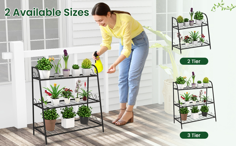 2-Tier Split-Level Design:There are two compartments to hold various sized plants, so you can place taller potted plants on the shelves based on the actual conditions. Two tiered design can not only organize plants properly, but also make good use of space.