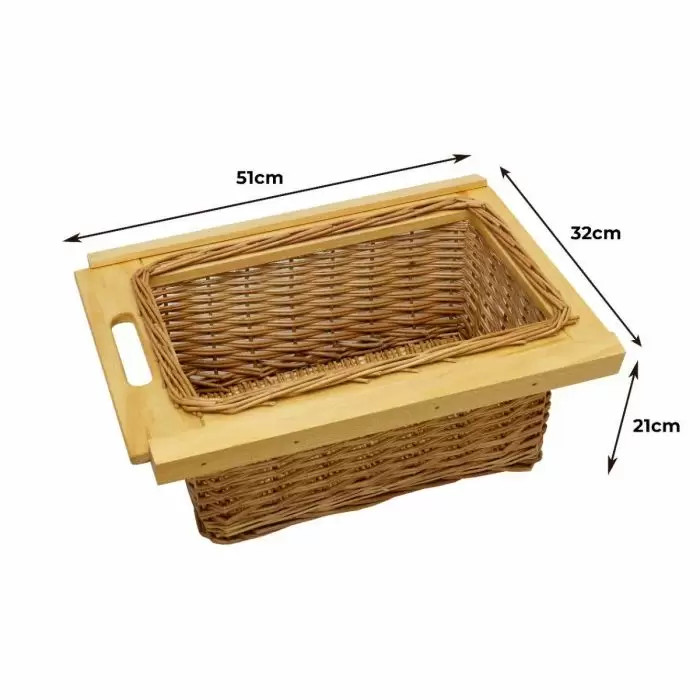 | Title: | Pull out Wicker Basket Drawer x 2 400mm Kitchen Storage Solution Larder Base Unit Cupboard with Handle Rustic Beech Wood Farmhouse Style 100% Handmade Rattan FREE Fixing Kit Included – Brown |