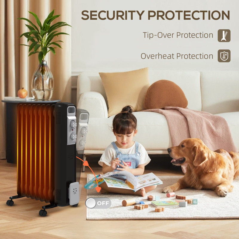 - Safe auto shut-off: Auto shut-off when oil radiator heater overheats or tips over, for total peace of mind.