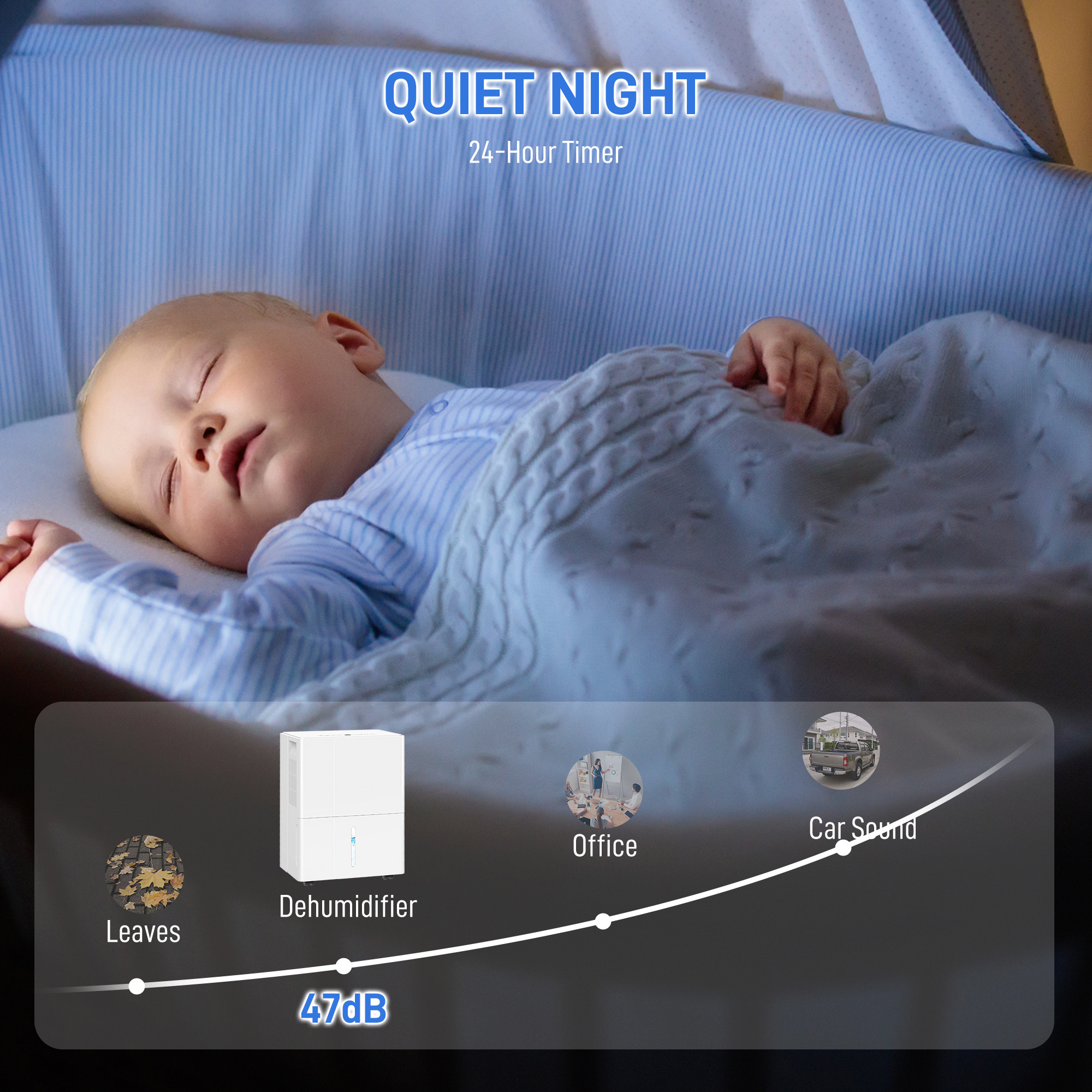 - Smart functionality: Features auto defrost function, memory function, sleep function (quiet and LED display off), easy-to-read LED display, children lock, swivel wheels and dual side handles, making this dehumidifier for bedroom user-friendly.