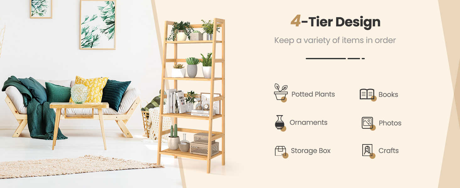 4-Tier and Space-Saving Design: 4 tiers of the pot stand can provide you with a large display area for various plants. A ladder-shaped design makes it suitable to be placed against the wall, allowing you to put plants together vertically, which will be ideal for small spaces.